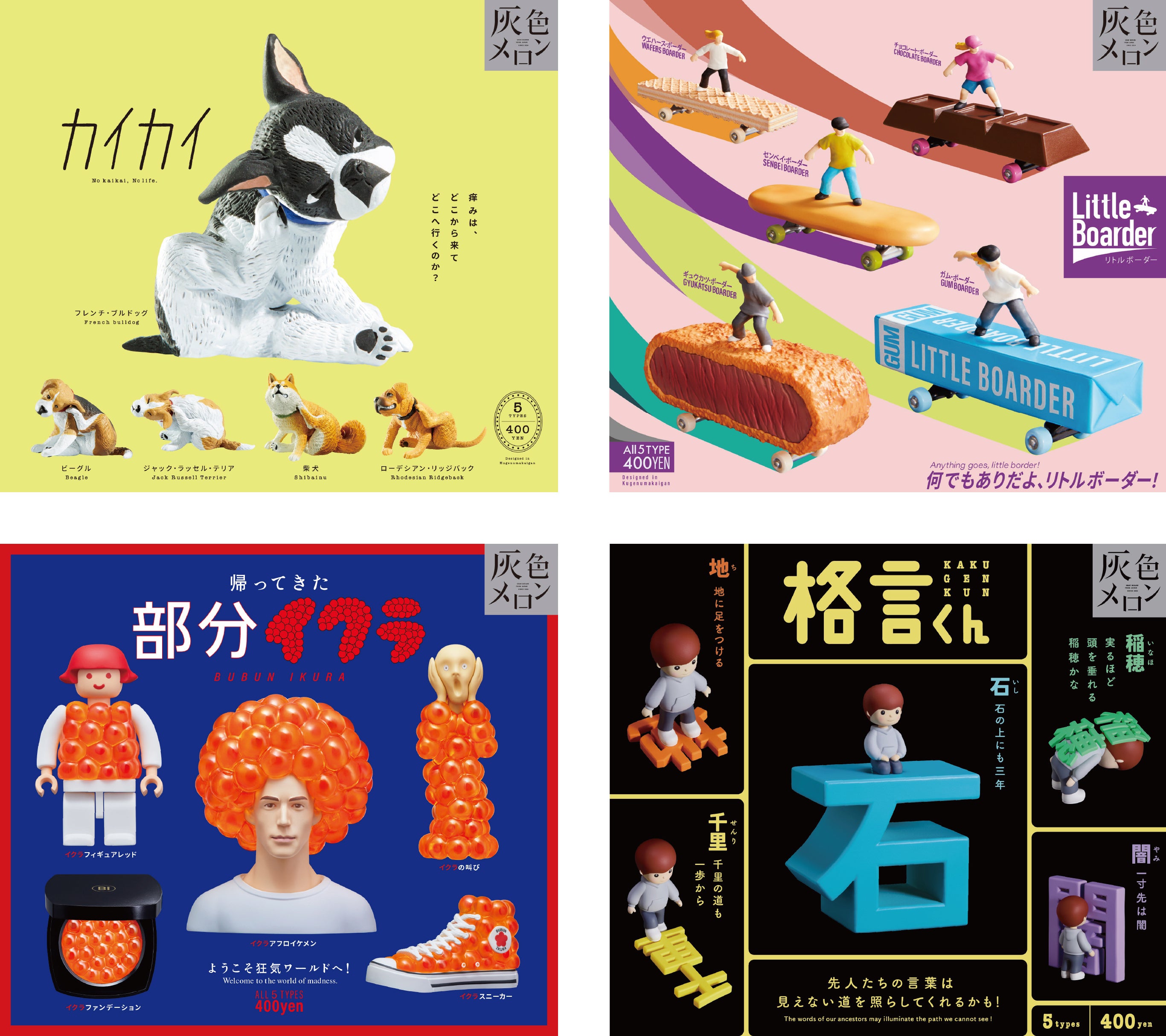 カプセルトイブランドの「灰色メロン」はガチャガチャアーティストの飯田マサミが2024年に立ち上げ、株式会社スタンド・ストーンズからカプセルトイをリリースしています。「本格的にヘン!」をコンセプトに、ヘンなものを真面目に生み出す滑稽さが個性のカプセルトイブランドで、現在10商品をリリースしています。話題作は「部分イクラ」「顔転生」や飯田マサミの個人ブランドからは「OSUSHIMEN(オスシメン)」などがあります。