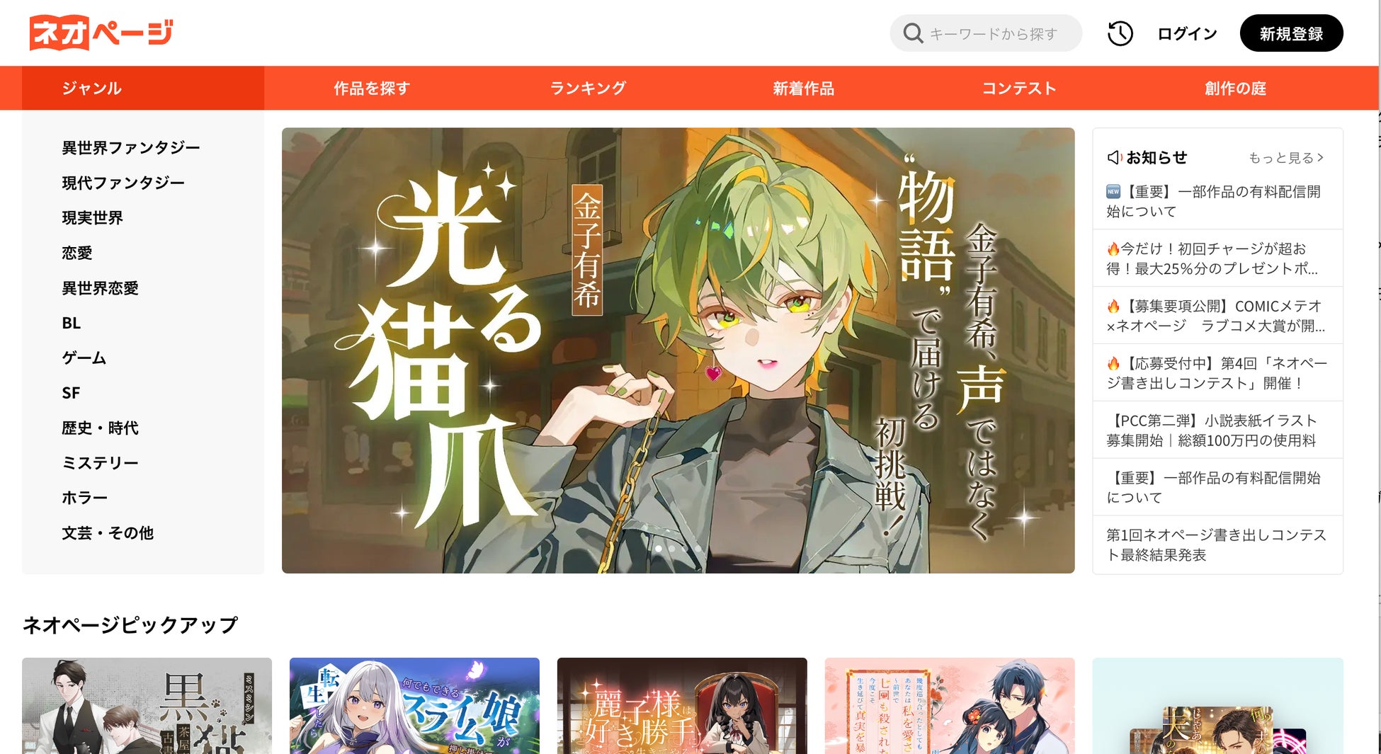 声優・金子有希による書き下ろし小説『光る猫爪』が、Web小説プラットフォーム「ネオページ」にて独占連載を開始しました。