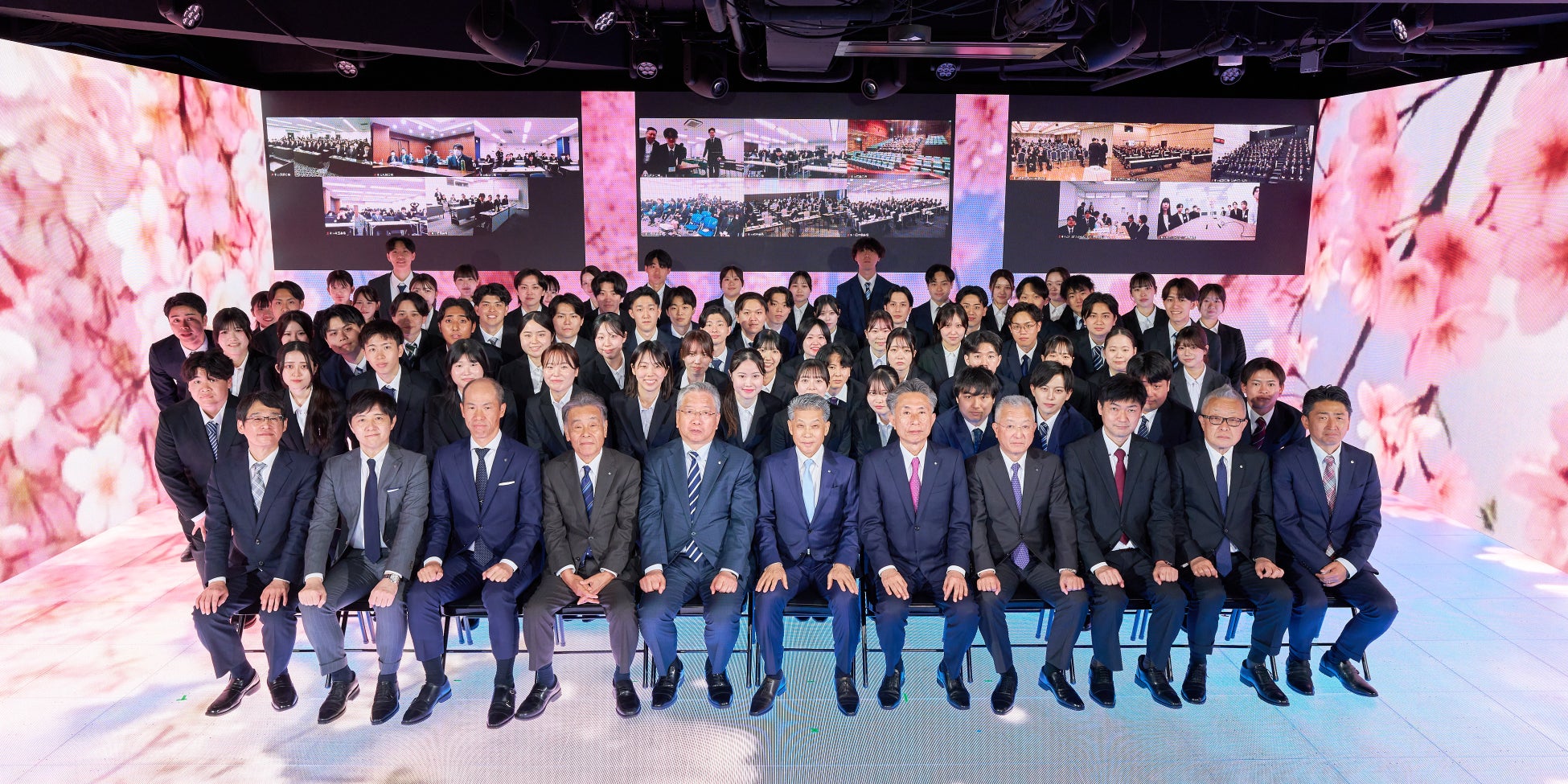 全国17会場を結んだ一体感、先輩社員からの応援ソング、そして家族への感謝を伝えるサプライズ企画など、新入社員を温かく迎え入れる式典となりました。