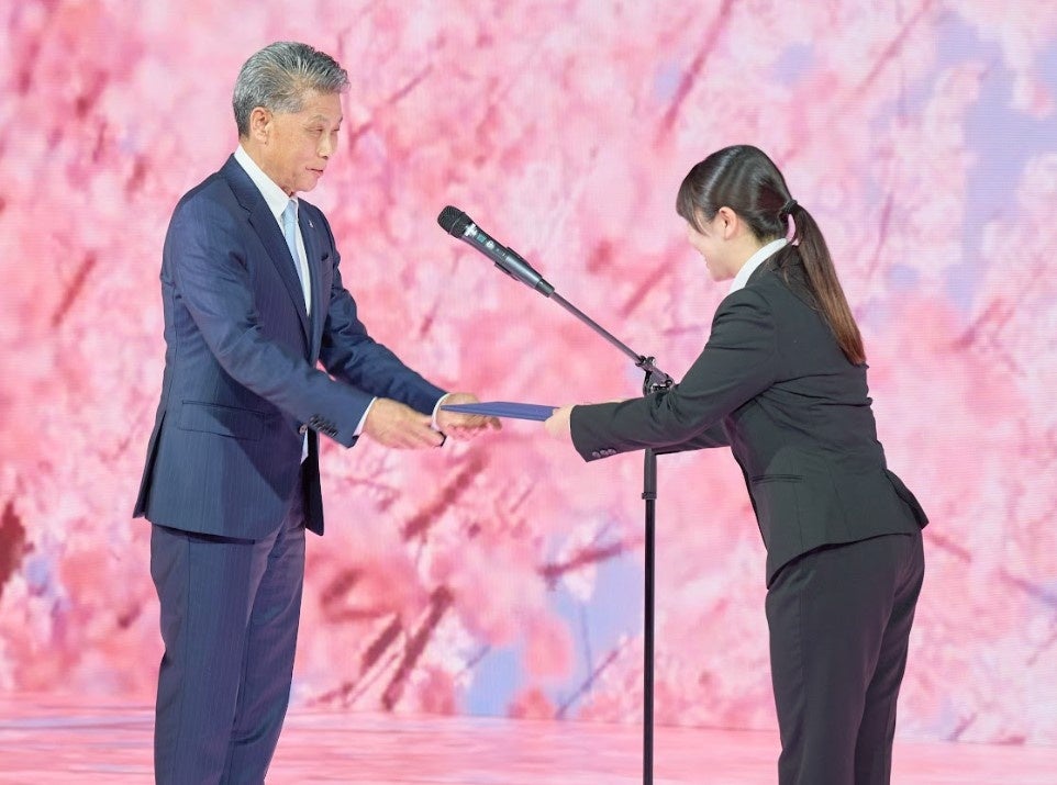 式典後半では、新入社員と家族をつなぐ企画として、株式会社ワールドインテックの新入社員・小松優花さんが両親への感謝の手紙を披露しました。