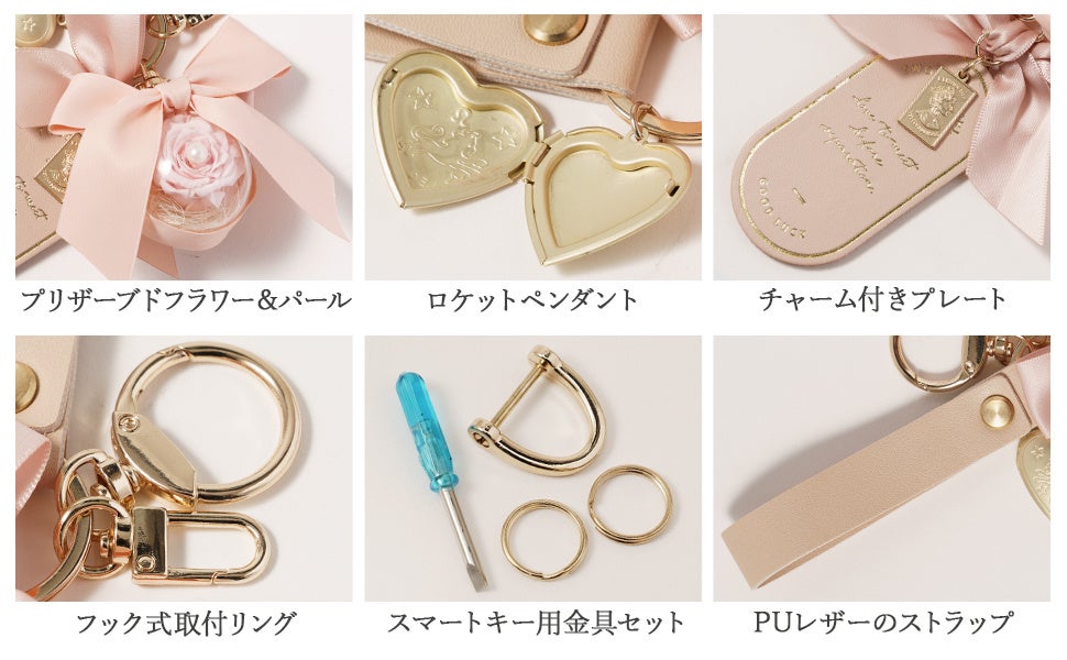 淡いカラーを基調に、可愛さと華やかさを詰め込んだキーホルダー。