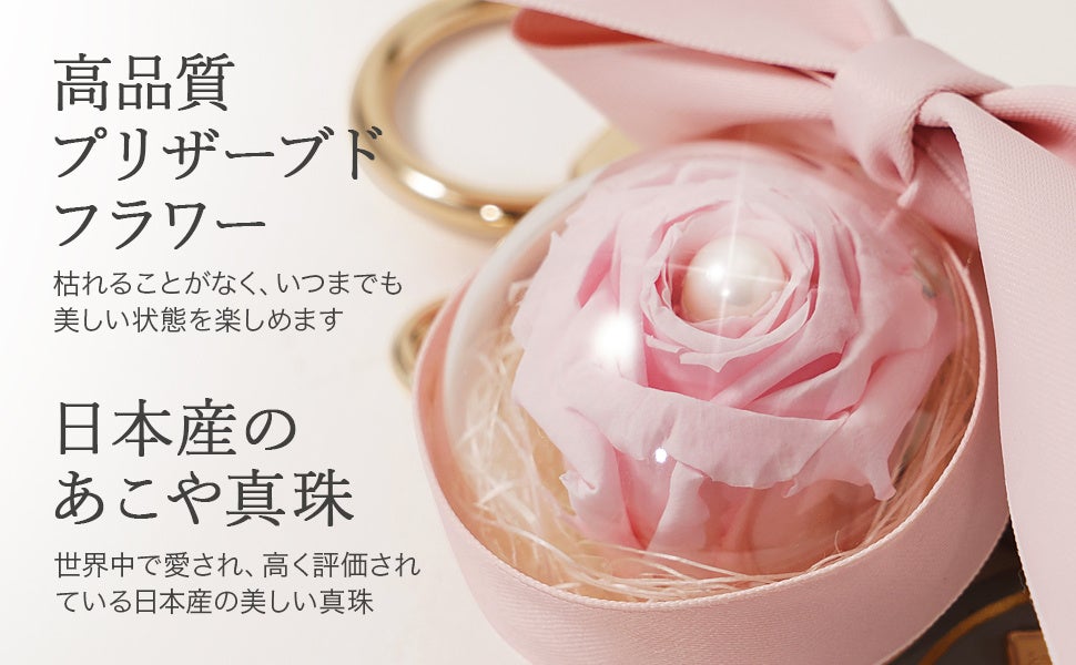 ◆唯一無二の特別な存在 プリザーブドフラワーもあこや真珠も、ひとつひとつ大切に育てられた天然由来のもの。 同じものは二つとない、どちらも唯一無二の特別な存在です。 そのため、この一品はプレゼントに最適な、心のこもった贈り物として仕上げました。 大切な方への感謝や祝福の気持ちを、永遠の美しさとともに伝えてください。