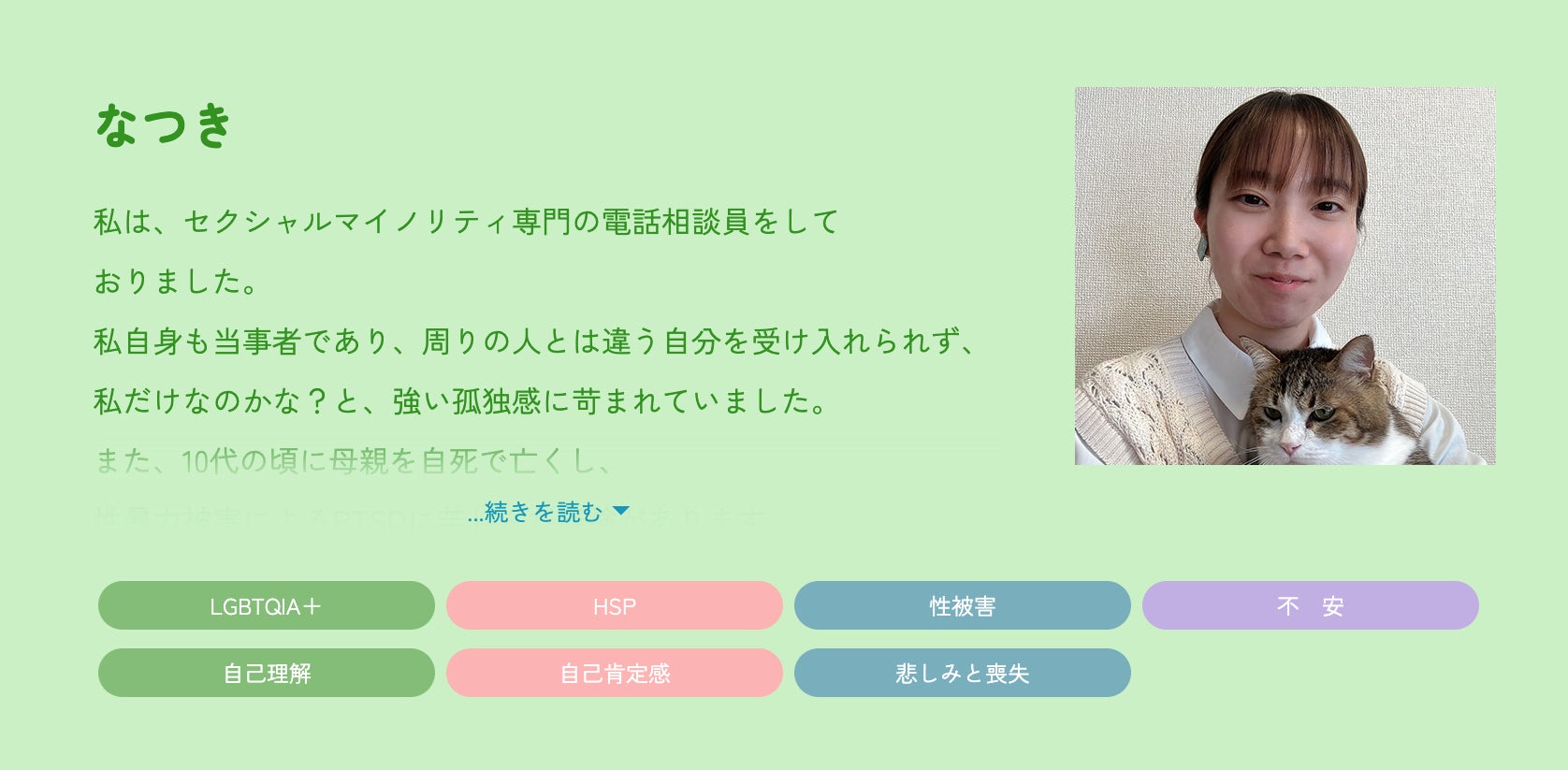 だからこそ、似た経験を持つセラピストだからこそ、安心して心を開けることがあります。