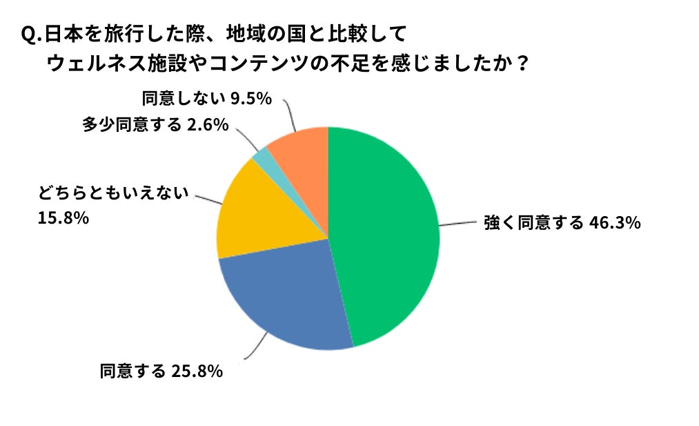 調査結果によると、日本旅行の経験者の7割以上が、他の地域に比べて日本のウェルネスに関連するコンテンツやサービスが不足していると感じています。その理由は大きく2つ考えられます。