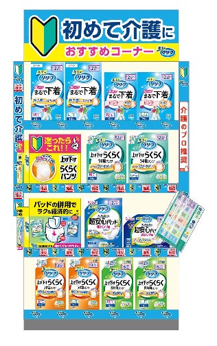 初めての介護に際し、何を選んでいいか分からないお客様に向けて、「初めての介護におすすめコーナー」を一部店舗で実施しています。商品の選び方を伝える情報POPや商品見本の設置などを通して、介護初心者でも迷わず商品が選べる売場づくりをサポートをしています。