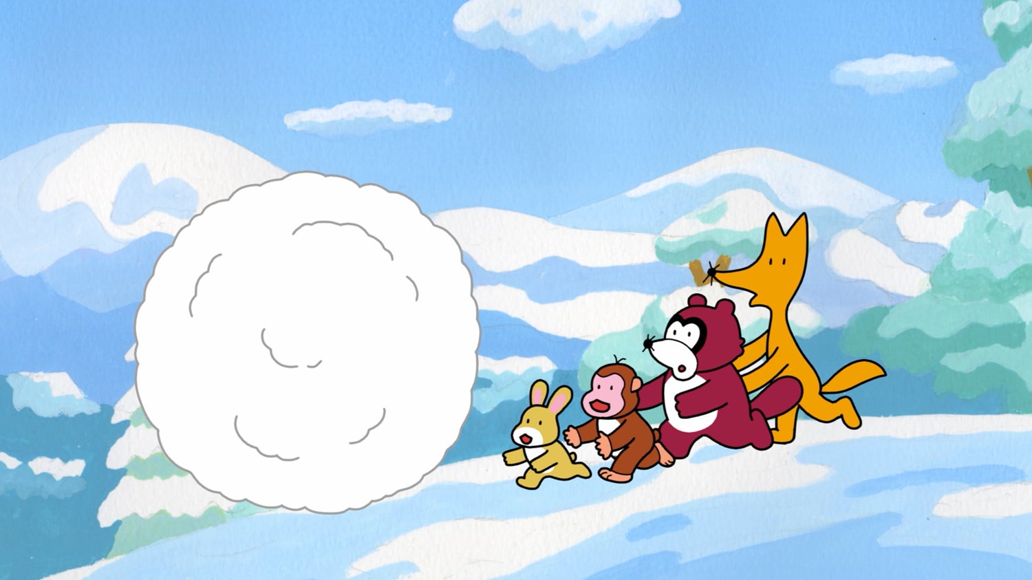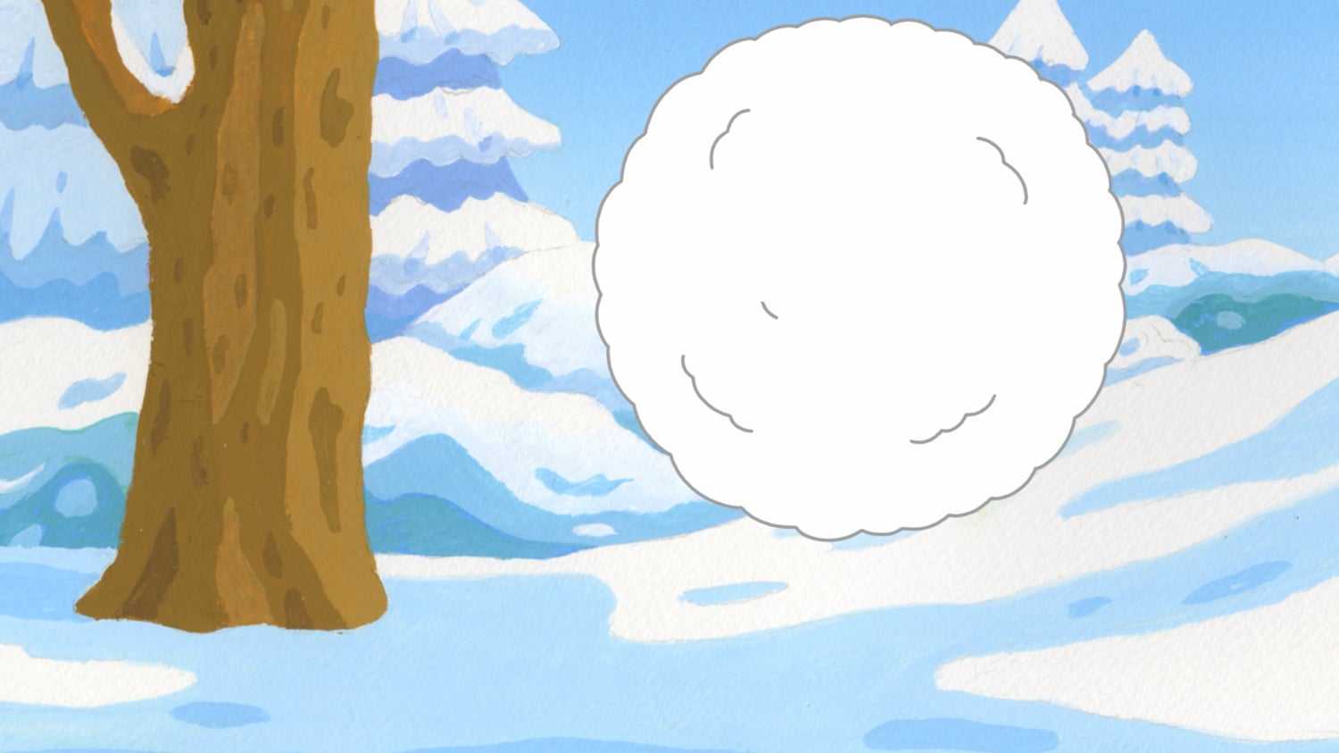 ひこね氏は以下のように語っています。「雪だるま篇の制作では、カールおじさんが雪のかたまりに巻き込まれるところが一番大変でした。また、一番こだわったのは雪が樹にぶつかってアールおじさんが現れるところです。」その動きの複雑さを、違和感なくスムーズなアニメーションで表現するため、多数の原画が必要となりました。