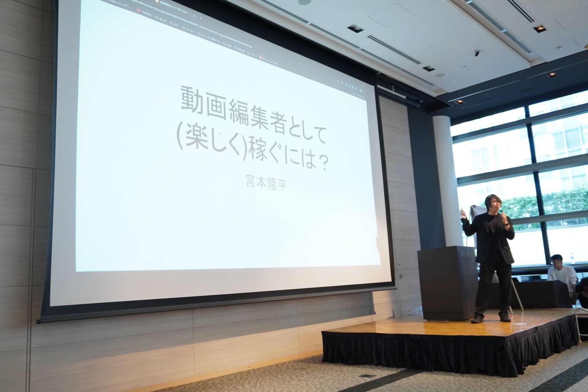 映像制作ディレクターの宮本氏は、動画編集者として稼ぐための方法を自身の経験に沿って紹介。今はディレクターとして活動している宮本氏ですが、当初は自身でも動画編集を行っていたそうです。