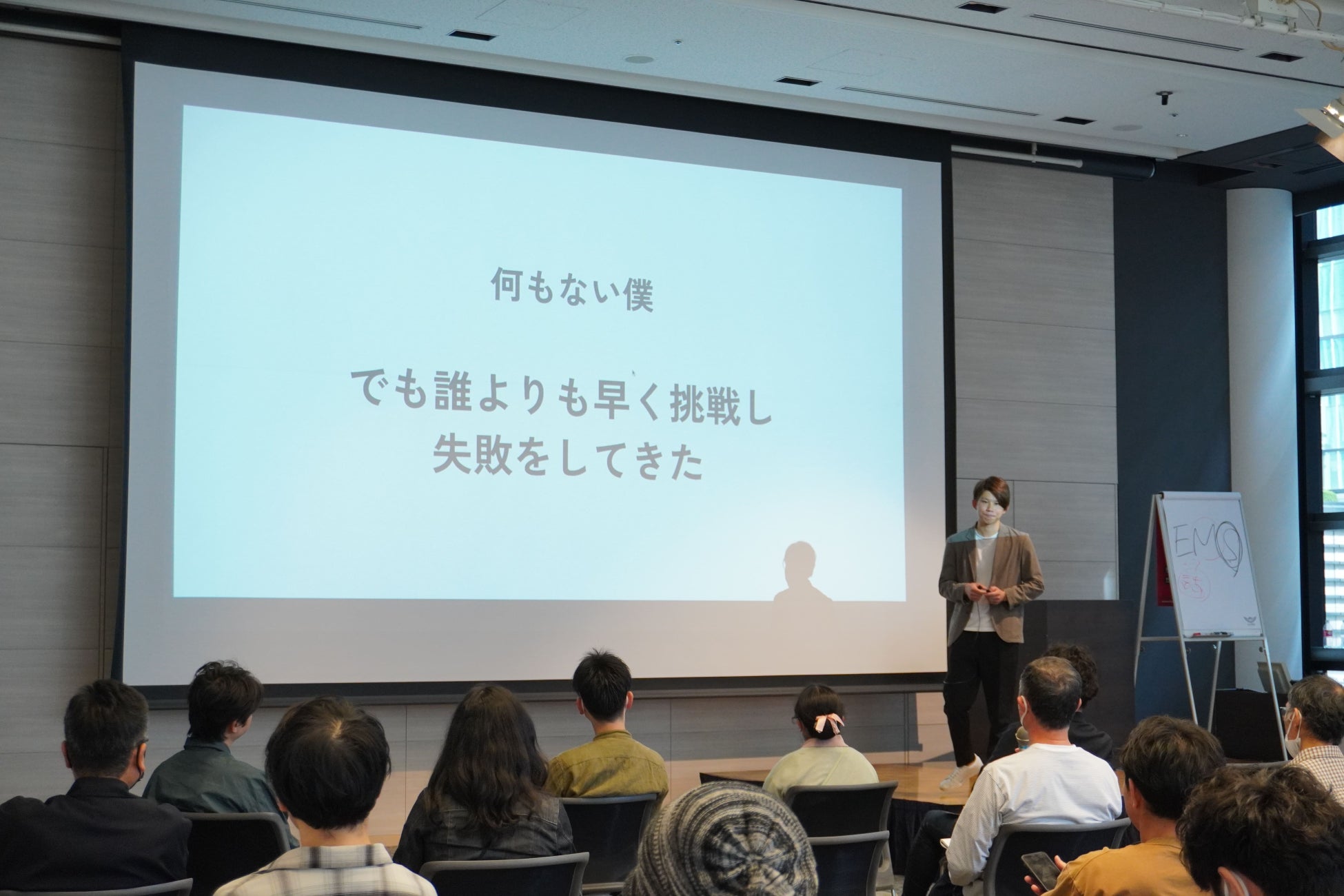 最後はメイカヒット社長の藤田雄也が、Webスキル習得オンラインスクール・サロン「メイカラ」を運営する想いを熱弁。公務員という自身の安定を捨ててメイカラの運営にコミットする藤田は「自分の可能性に蓋をしている人の才能を見出し、多くの人の人生に”彩り”を添えたい」と語りました。