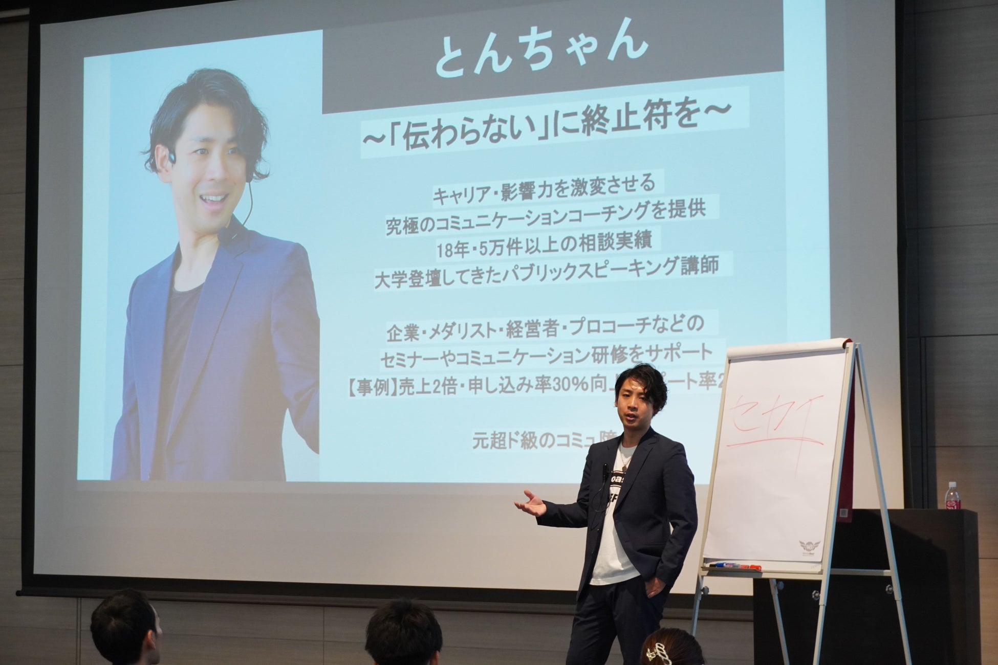 熱さと滑らかさを兼ね備えた口調で話し出すとんちゃんは、過去に大勢の前で極度の緊張に陥りながら登壇した経験を明かしました。