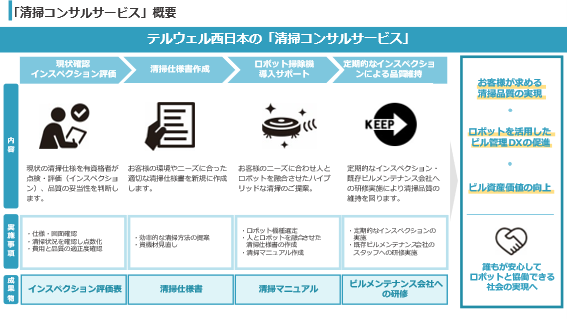 NTT西日本グループのテルウェル西日本株式会社(代表取締役社長:山田邦裕、以下、テルウェル西日本)は、お客様のニーズ、環境に合った最適な清掃方法を提案する「清掃コンサルサービス」を2024年6月よりサービスメニュー化し、提供を開始します。