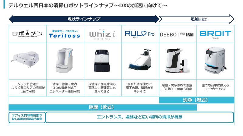 4. テルウェル西日本の清掃ロボットラインナップ