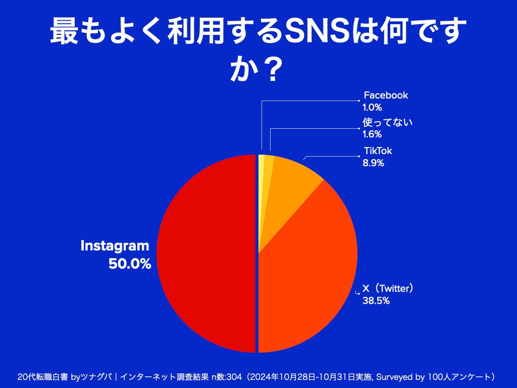 株式会社ツナグバ(所在地:東京都千代田区、代表取締役社長:仲村正俊、以下ツナグバ)は、2024年10月28日から10月31日にかけてインターネット調査を通じて「20代のSNS利用実態に関するアンケート」を実施しました。