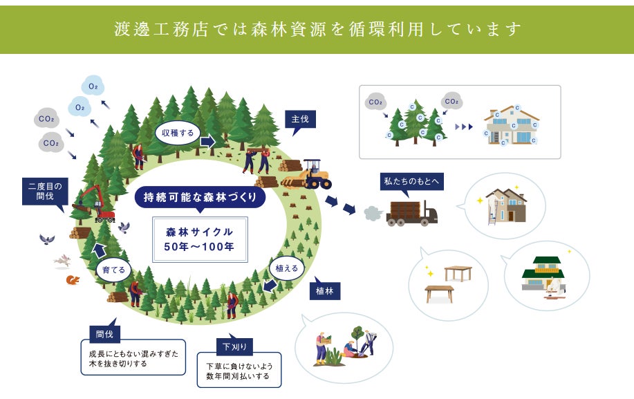 令和6年2月に岐阜県東白川村および東白川製材協同組合と包括提携を結び、東白川村の東濃ヒノキを構造材に積極的に活用しています。また、当社は同村内に山林を所有しており、百年先の持続可能な森づくりを目指し、植林イベントを開催しています。今回のカーボンオフセットには、東白川村で創出されたG-クレジットを活用する予定です。