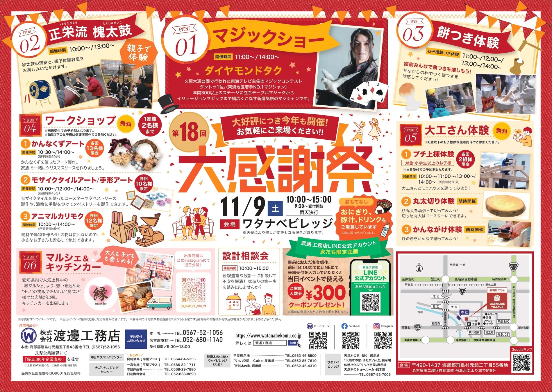 株式会社渡邊工務店(代表取締役 服部 尚也)は、創業明治40年以来、愛知県海部郡飛島村に本社を置き、伝統建築物の神社・仏閣をはじめ、新築住宅・公共建築・リフォーム・リノベーション・不動産を主軸とした総合建築事業を展開する企業です。