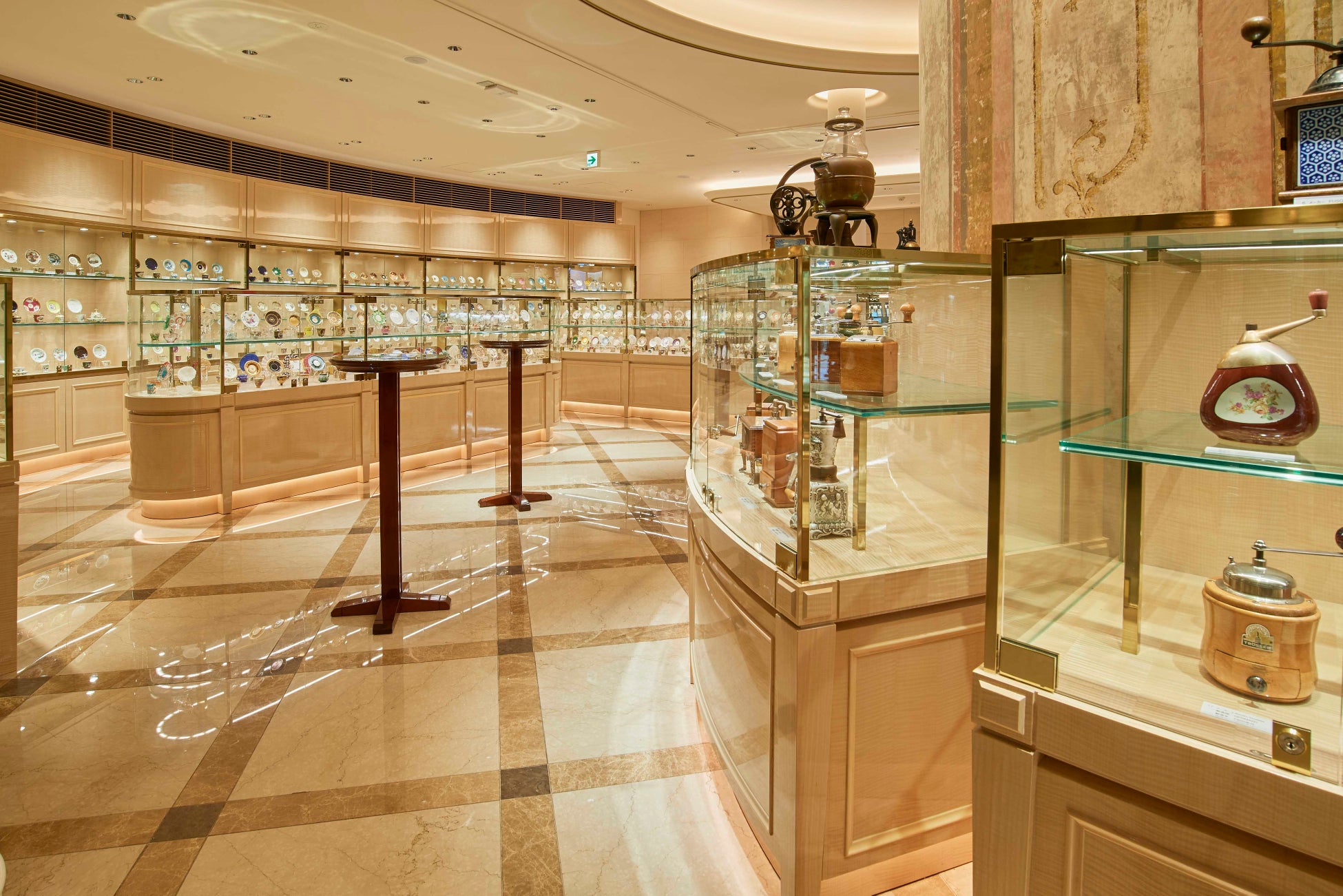 1階のコーヒーファクトリーでは、コーヒー生豆の熟成・焙煎・パッキングまで全工程を行うとともに、貴重なアンティーク・デミタスカップを展示。