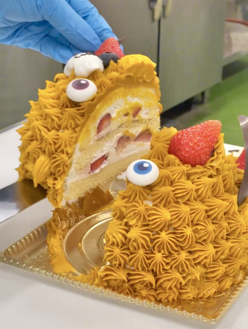 かぼちゃの生クリームの下はドーム型の苺ショートケーキとなっていて、