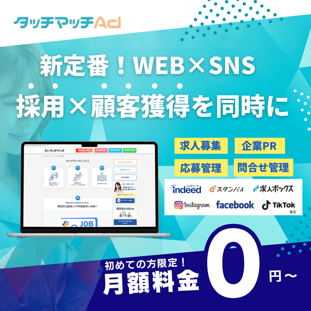 「求人と企業PRが同時に叶う」ずっと手軽にちょうどいい「タッチマッチAd」誕生!