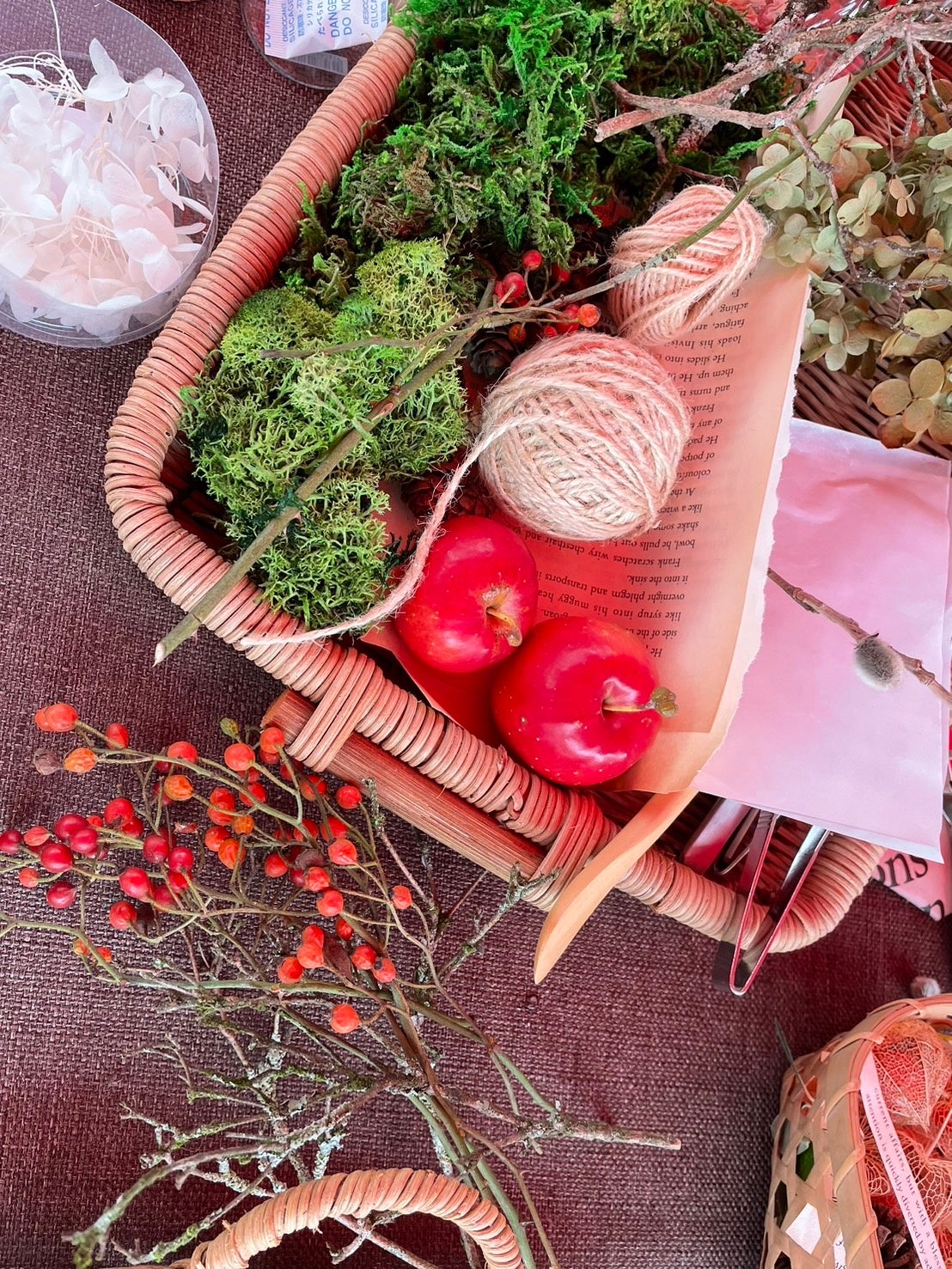 里山で見つけた木の実や小枝を使って、自分だけのドライフラワーボトルを作成。素敵なお土産を作ってお持ち帰りいただけます。