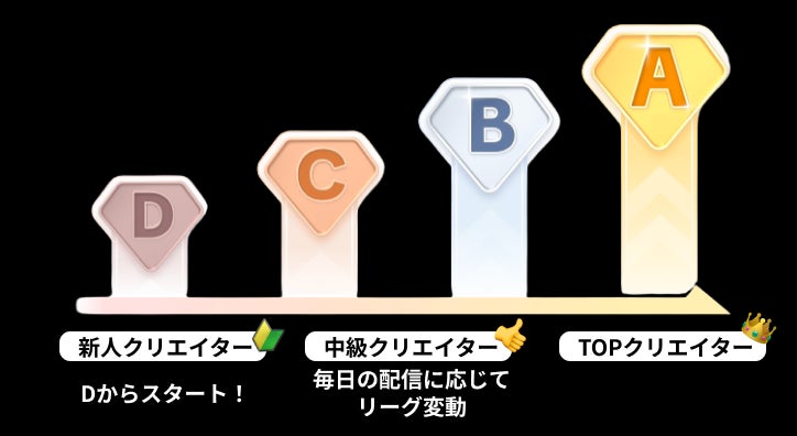 全LIVEクリエイターをA1〜D5の18個のリーグに分け、所属するクリエイターのイベント期間中の昇格数及び特定リーグへの昇格達成人数に応じてエージェンシーがポイントを獲得でき、得たポイント累計ランキングでエージェント同士が競うバトルイベントです。