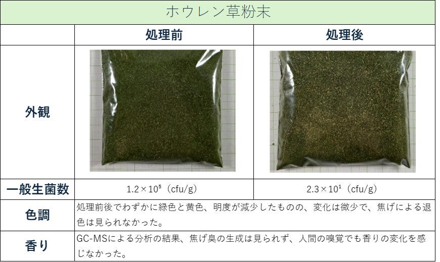 この結果を踏まえ、当社では殺菌可能な粉末の種類拡大に向けた研究開発に注力し、粉末食品の安全やフードロス対策に寄与してまいります。