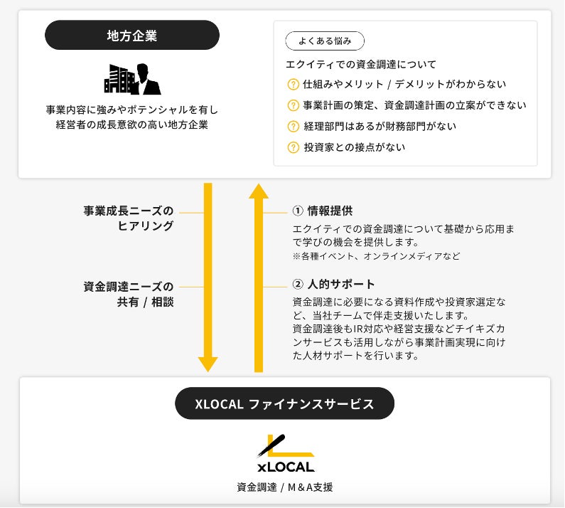 都市から地方への人材流入を促進し、地方企業が専門性の高い複業プロ人材を採用する地方特化型のダイレクトスカウトサービス「チイキズカン」を運営する株式会社XLOCAL(本社:山形県鶴岡市、代表取締役:坂本大典)が、「チイキズカンファイナンス」を2024年12月13日にローンチいたしました。不透明な社会、不確実な未来、過去の数字を基に返済をゴールとして調達する「融資」は、企業が新たな挑戦を行うための資金として適さないケースが増加しています。