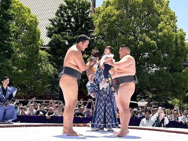 浅草観光連盟(会長:冨士滋美)は、本年も浅草寺本堂裏広場に設置した特設土俵で令和7年4月26日(土)に、「九代目市川團十郎「暫」復元記念 泣き相撲」を開催します。九代目市川團十郎「暫」像における法要の後に160人の赤ちゃんが参加して泣き相撲を行います。