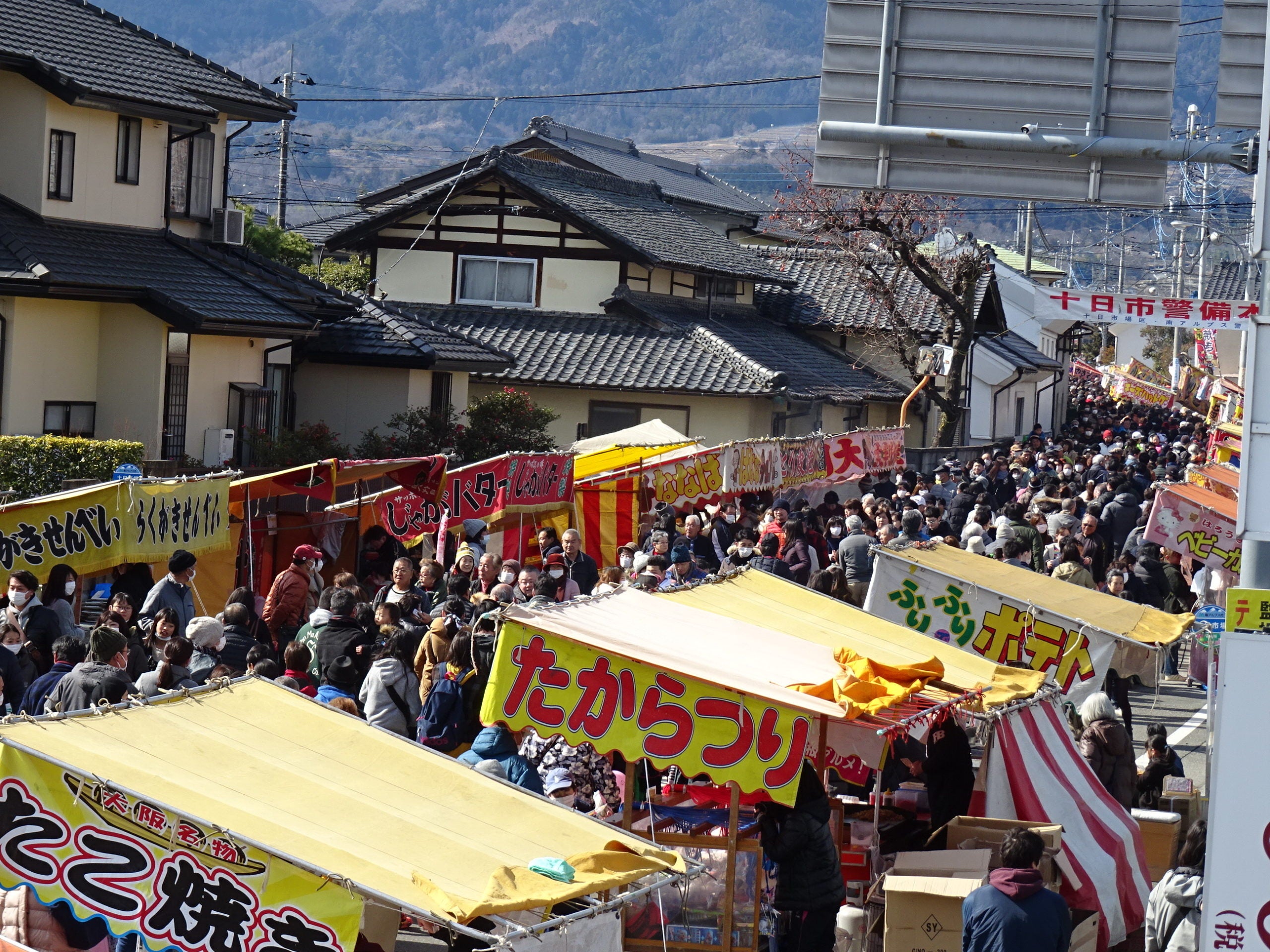 「甲府盆地に春を訪れを告げるお祭り・十日市祭典」は、400年を超える歴史があり、「ひと・ものの交易の場」として、2日間で10万以上の人が足を運ぶ大人気のイベントです。