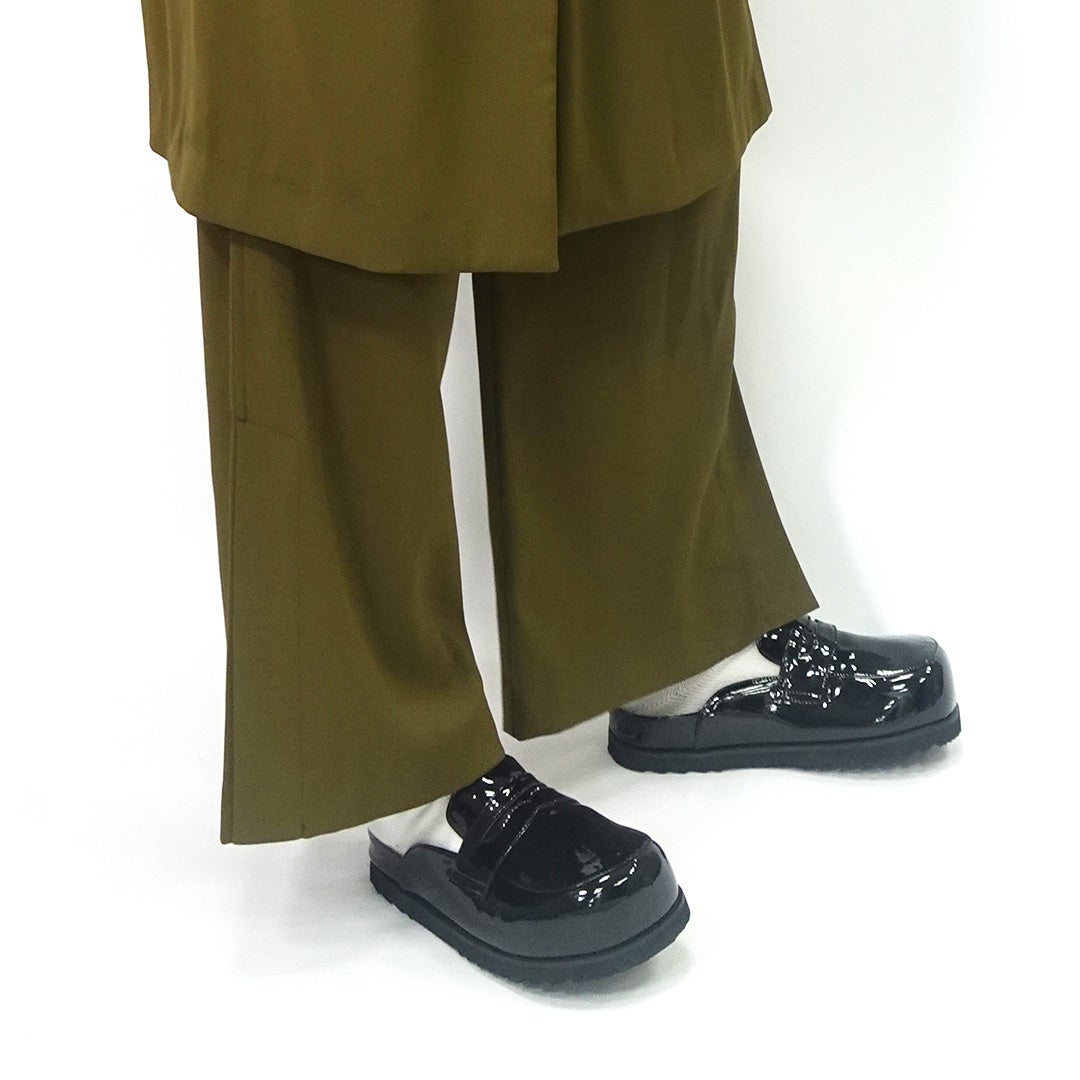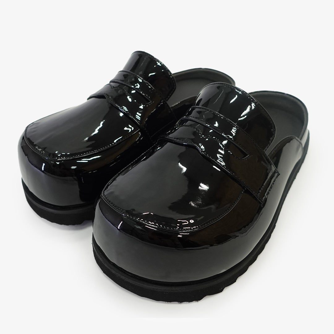 サボタイプで脱ぎ履きもスムーズに、リッチなエナメルが印象的。