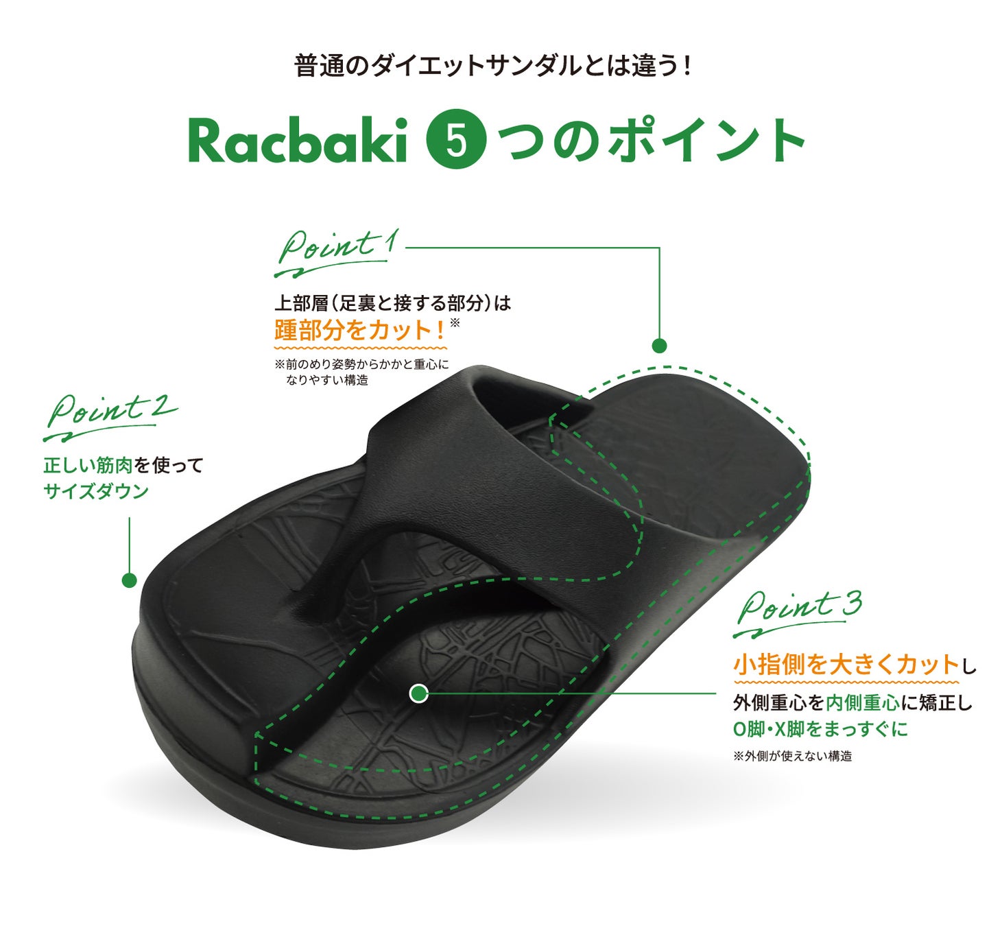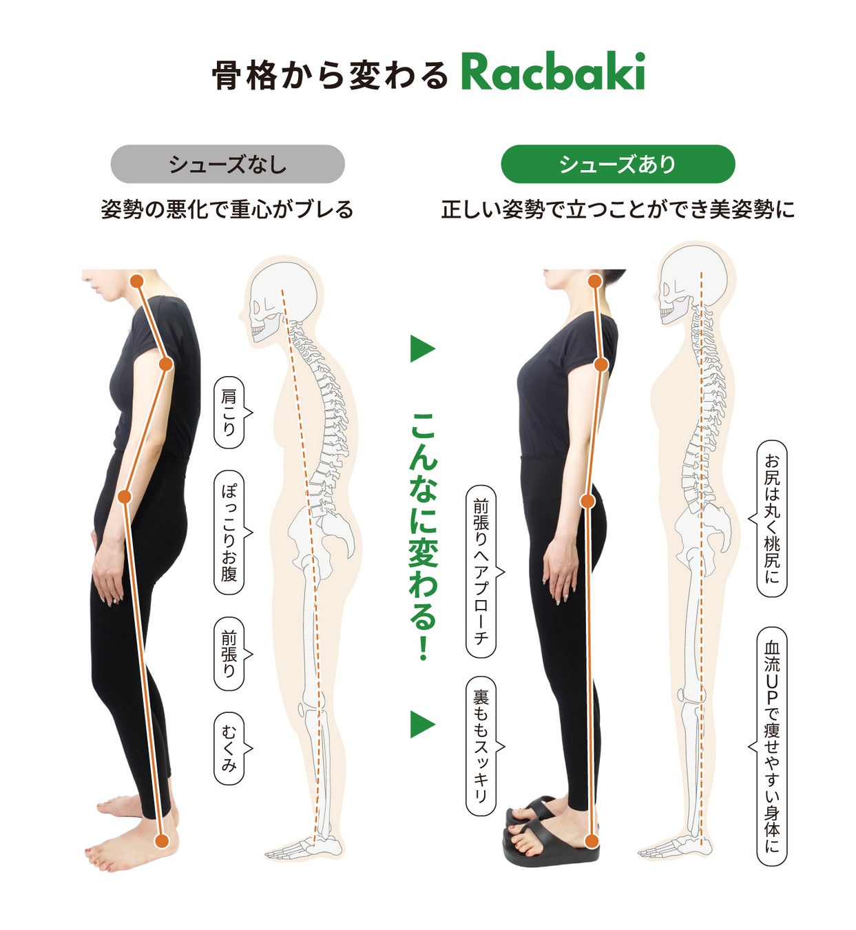 Racbaki(ラクバキ)は、ダイエット効果と骨格矯正を兼ね備えた革命的なシューズです。