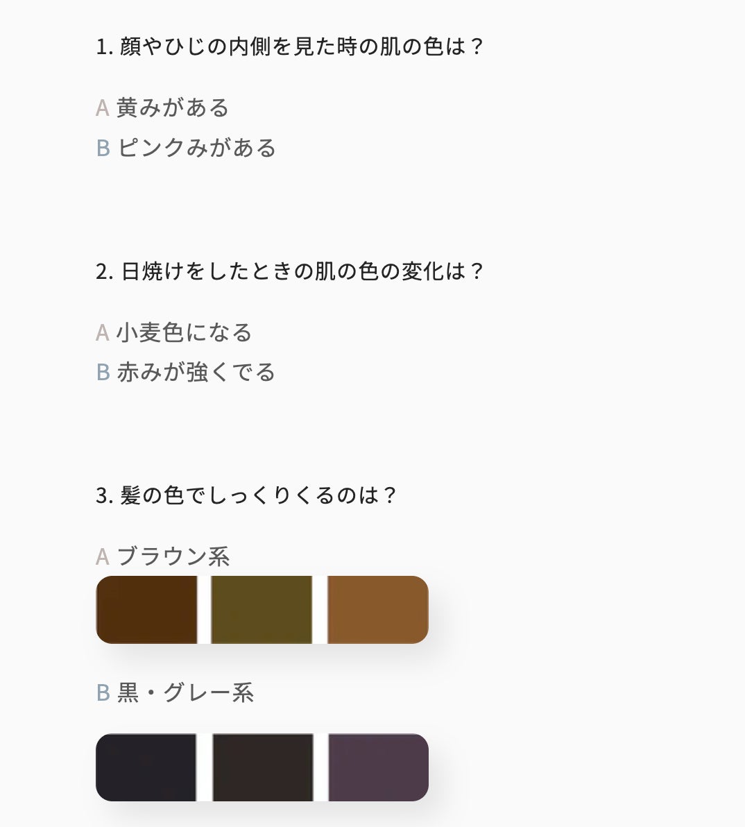 ※本来のパーソナルカラー診断と異なり、肌の色みに特化した簡易的な診断です。