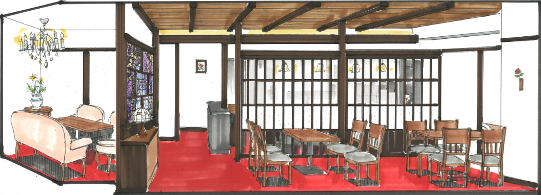 料理の主軸は、素朴ながらも丁寧に仕込まれた「おばんざい」。店の雰囲気は、“大正ロマン”をイメージした和洋折衷の内装に仕上げました。加西市の落ち着いた街並みに調和しつつ、写真に収めたくなるような美しい空間を目指します。