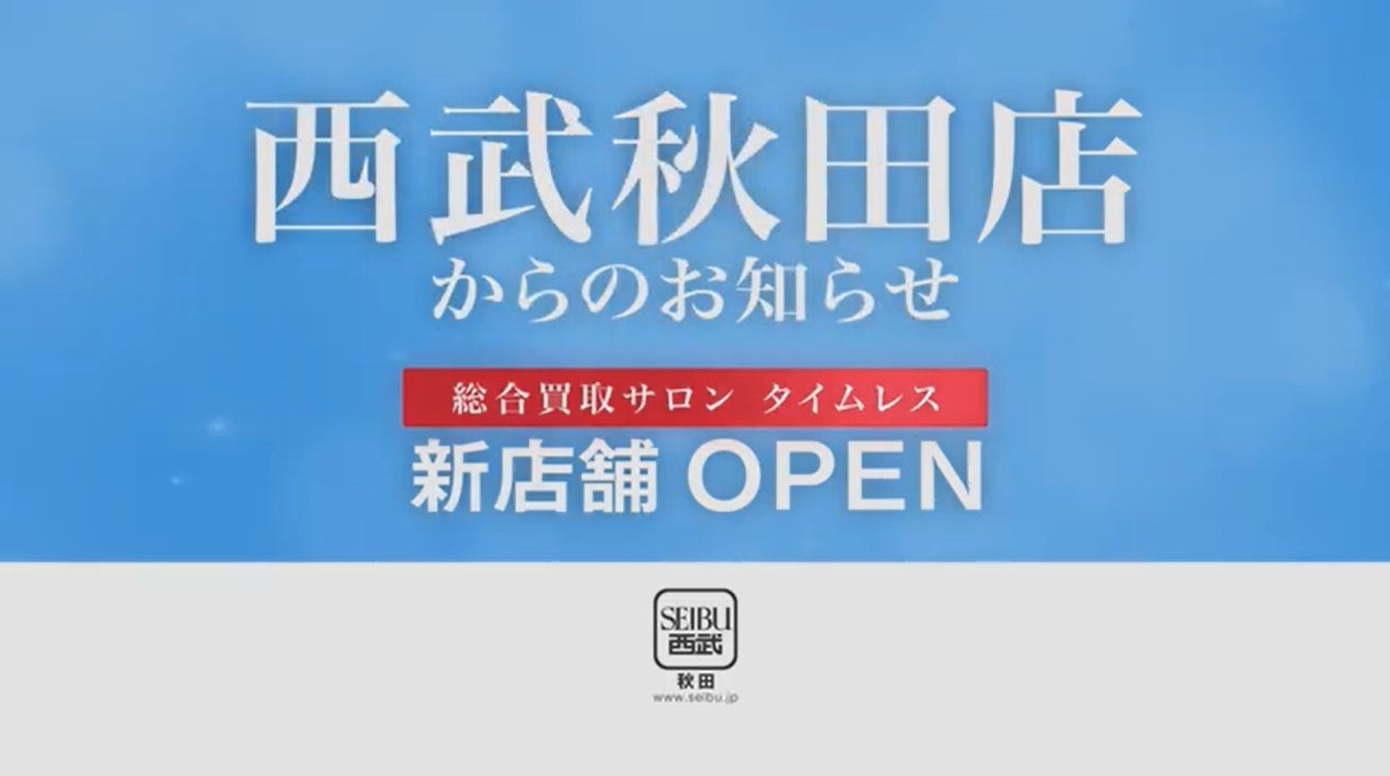 【新CM】百貨店出店数No.1(※1)のタイムレスが秋田県エリアで新CM公開!「総合買取サロンタイムレス 西武秋田店」開店に伴い9月24日(火)より放映