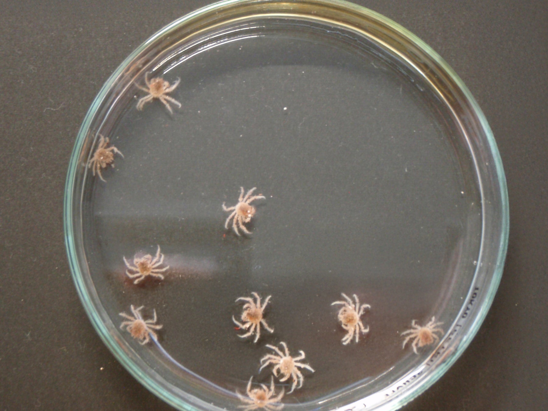 先行研究を参考に細かな工夫を凝らした結果、2018年に初めて稚ガニの繁殖に成功します。約600匹の稚ガニが誕生しましたが、今度はなかなか大きくならないという課題に直面。成長しないばかりか、共食いや脱皮の失敗などにより個体数が減少していきました。こうして成功からわずか2年、すべての個体が死亡しました。