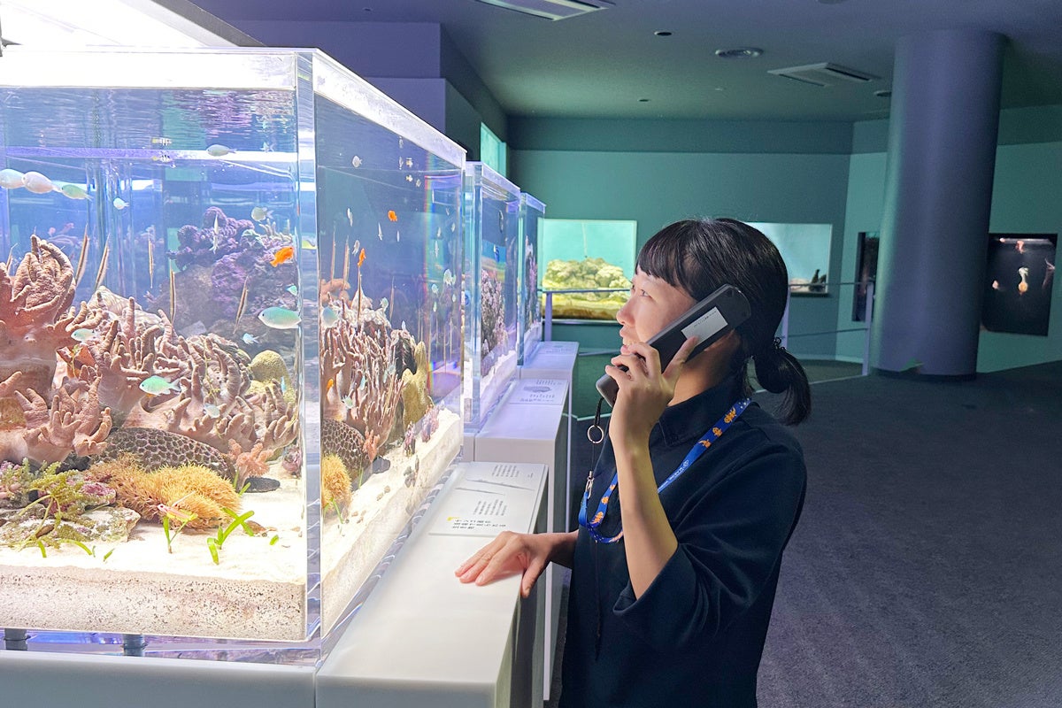 カニプロジェクトをテーマとした展示コーナーも増設され、当園で繁殖した稚ガニをお客様にご覧いただけるようになりました。展示するだけでなく、11月22日より販売を開始した『音声ガイド』では、担当の飼育員がカニプロジェクトの取組をより深くお話しています。