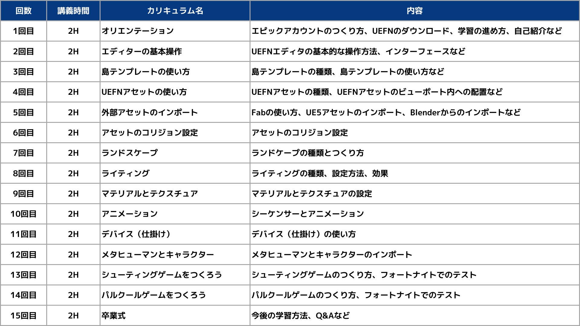 〇フォートナイトゲーム制作コース<ベーシック>のカリキュラム内容