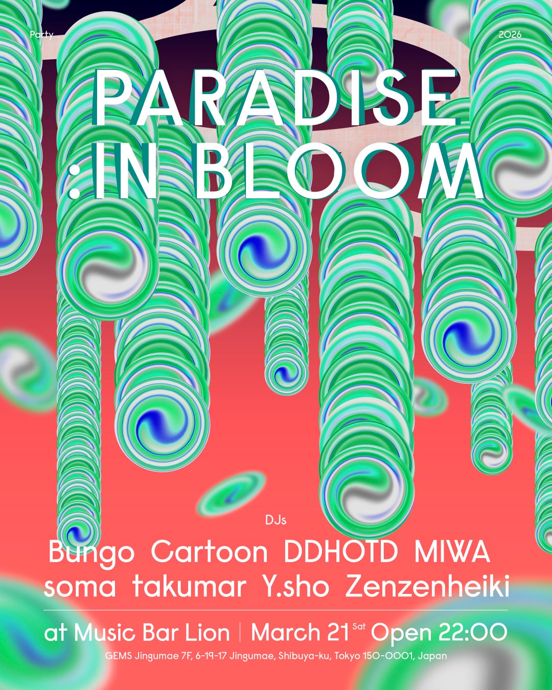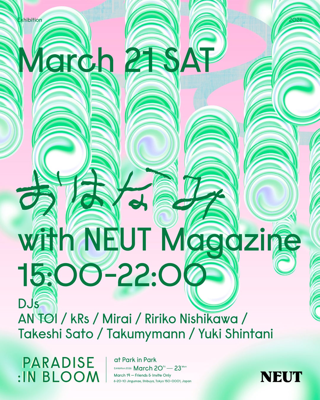 クリエイティブエージェンシー・paradiseは、創立2周年を記念し、2026年3月20日(金)から3月23日(月)までの4日間、渋谷・MIYASHITA PARK内「Park in Park」にて、インスタレーション展示「PARADISE : IN BLOOM」を開催いたします。