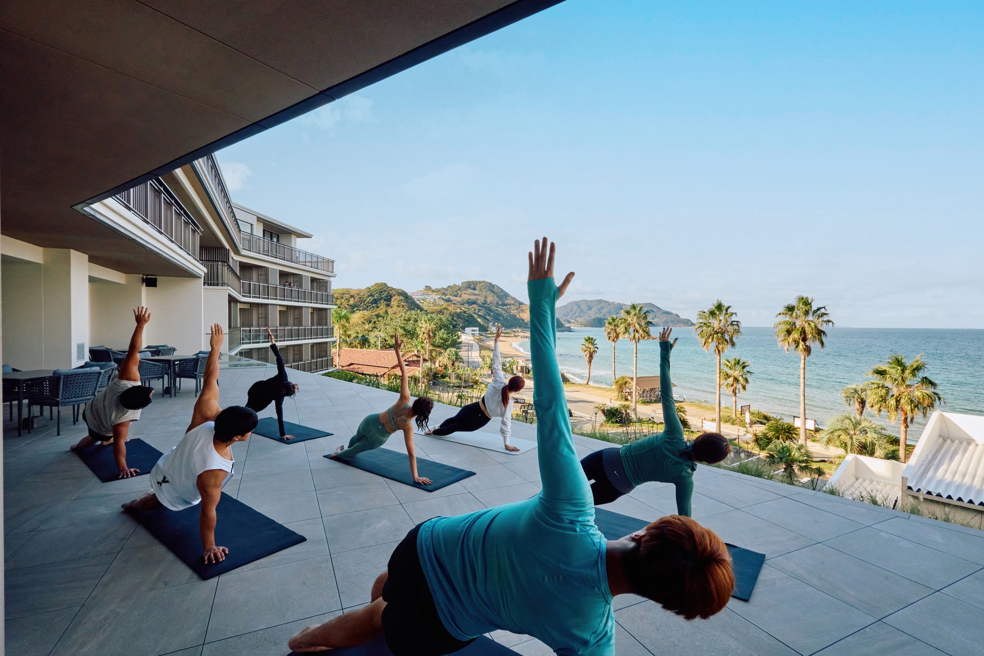 オーシャンビューのイベントスペースで、日の出とともに朝ヨガを。インストラクターによるグループレッスンを毎週日曜日(3連休の場合は祝日)に開催します。糸島での散策前、チェックアウト前のリフレッシュにお楽しみください。