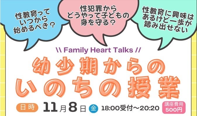 2024年11月8日(金)、熊本県民交流館パレアホールにて開催される親子で学ぶ性教育イベント「Family Heart Talks」で保護者と子どもたちが一緒に性について学ぶ貴重な機会を提供します。