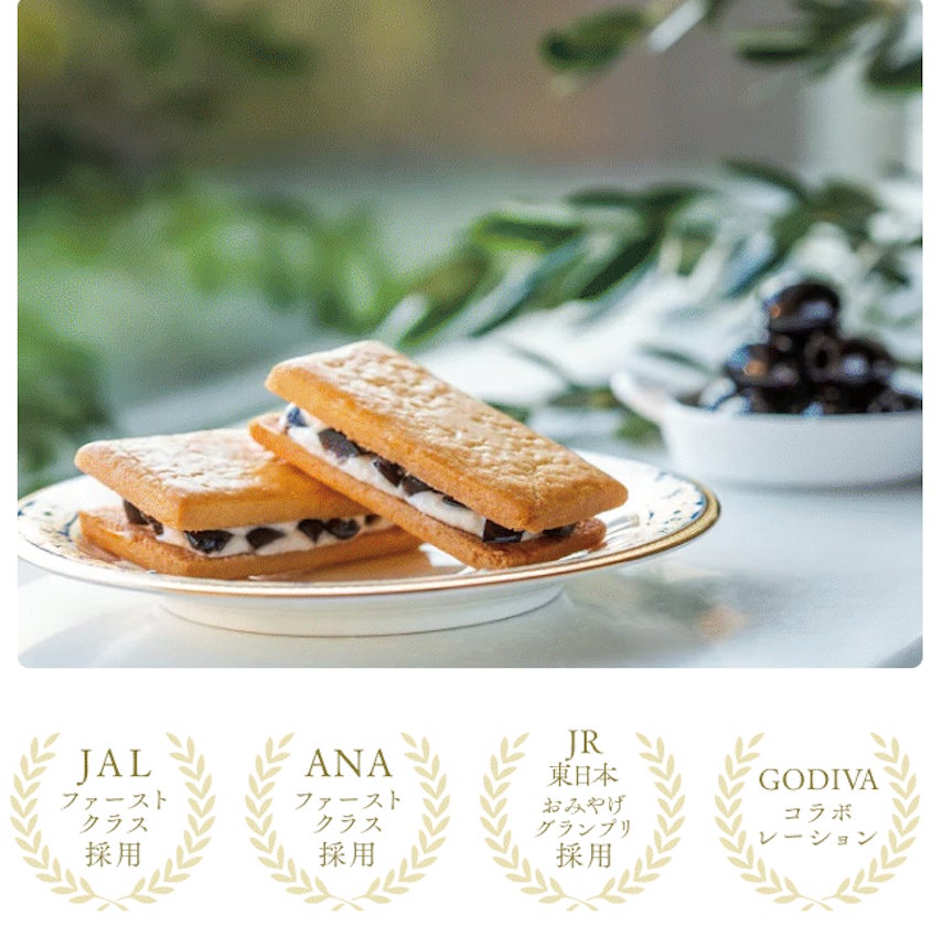 「TERAKOYA」を代表するスイーツといえば、2015年の販売から多くの皆さまに愛され続ける「オリーブ・サンド」。ホワイトチョコレートをベースにしたコクのあるクリームにシロップ漬けにした最高級オリーブを合わせ、バターの香り豊かなビスキュイでサンドしたこだわりの一品。JALやANAのファーストクラスへの採用、GODIVAとのコラボや、JR東日本おみやげグランプリで連続受賞するなど、多くの皆さまにご支援いただいております。