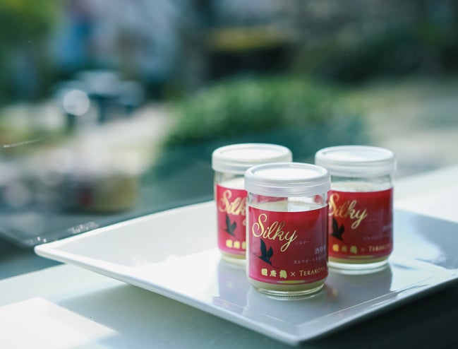 70年の歴史を刻んできた武蔵野のフレンチレストラン「TERAKOYA」と、1860年創業の野口酒造店がコラボレーションした「酒の華スイーツSilky(シルキー)」。酒を醸した際に生まれる酒粕とオリーブシロップが出会うことで生まれた、華やかな香りとなめらかな口溶けが楽しめる新しい感覚のクリーミーなムースです。