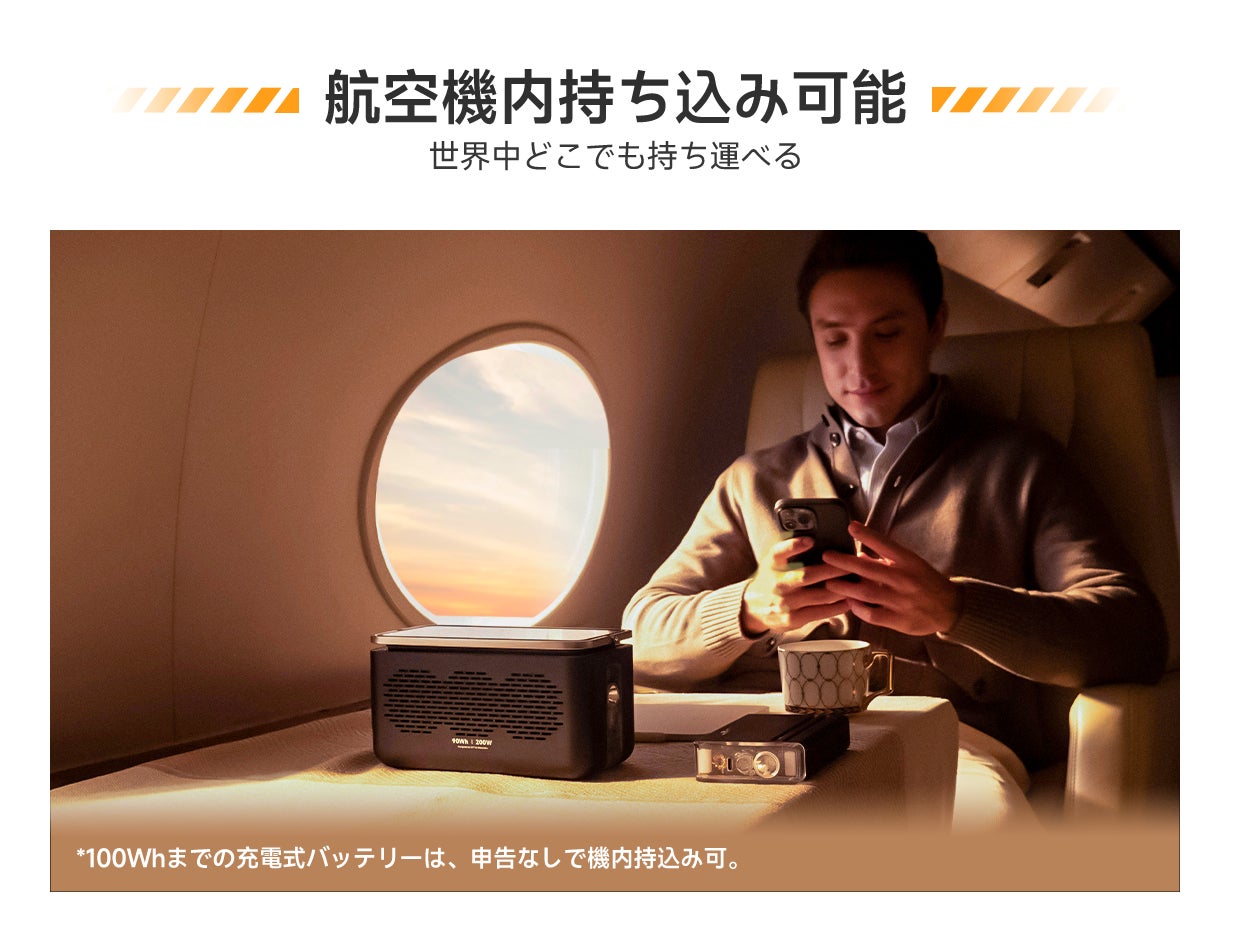 車での旅行でしか持っていけなかったポータブル電源が、飛行機での旅行にも気軽に持ち出せます。