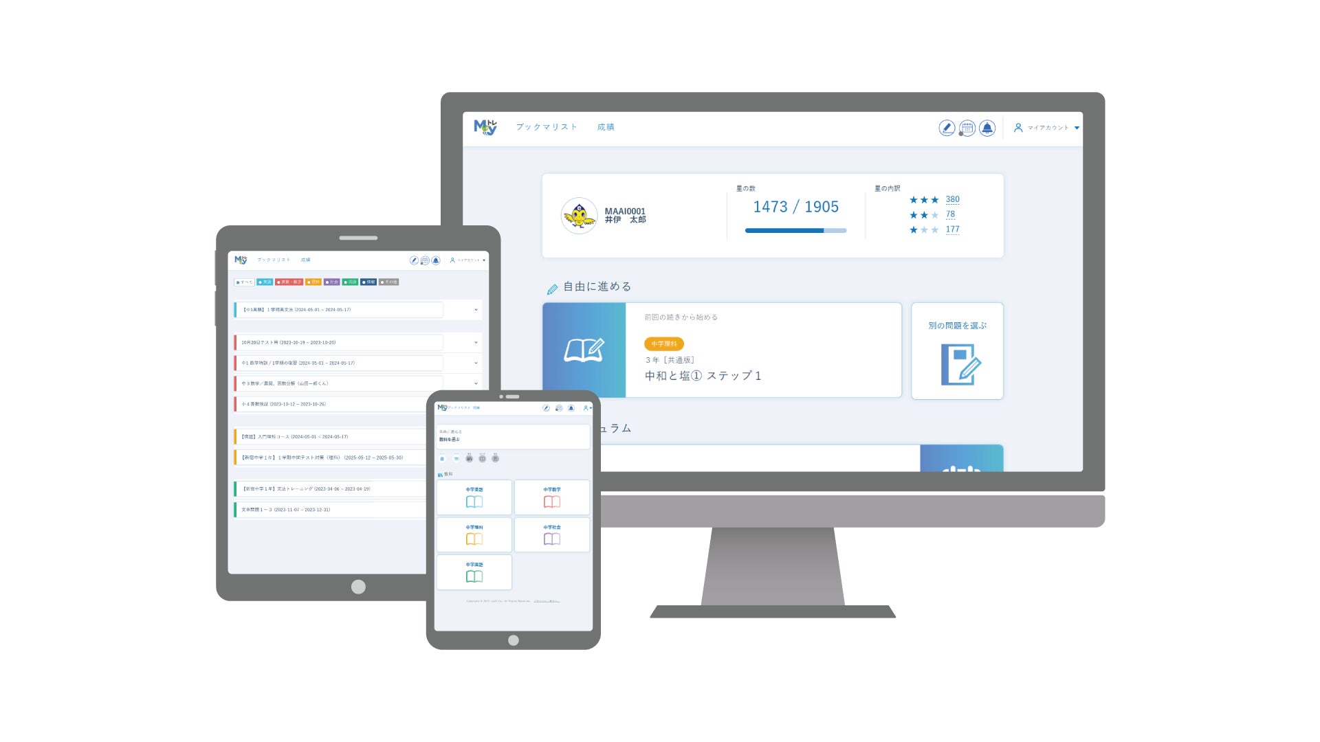 教材には教育開発出版株式会社の「Myeトレ」(https://myetr.jp/)を使用。小1から高3まで対応した120万題のコンテンツを備え、基礎知識の定着から思考力の育成までをサポートします。「書いて身に付ける」という紙学習の良さを、デジタル学習で効率的に活かせる教材です。