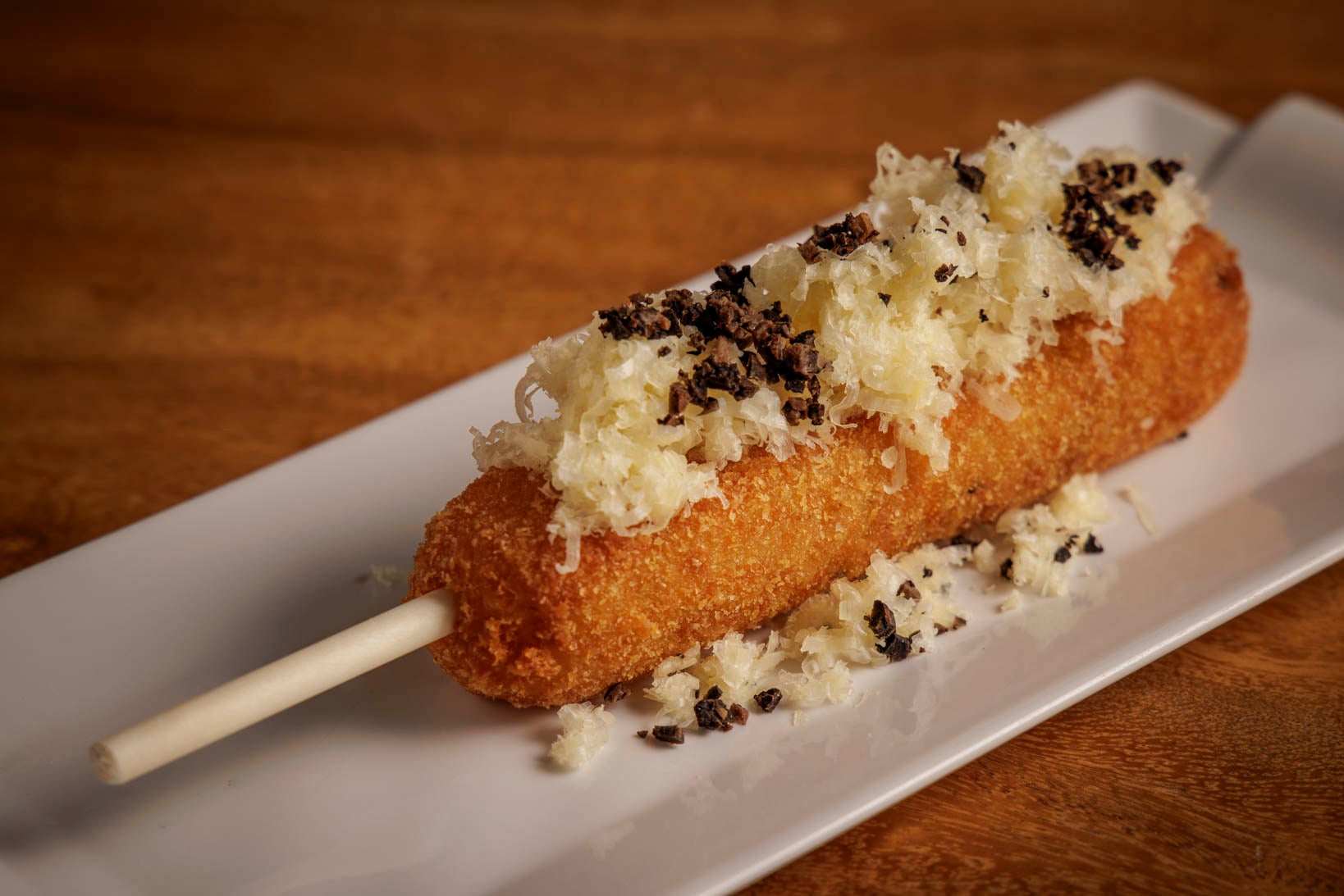 ■トリュフアランチーニ 1,800円 1日限定20本 イタリアのリゾットコロッケ、アランチーニをトリュフとコンテチーズを使って贅沢にアレンジ。トリュフの芳醇な香りとコンテチーズのコクが絶妙にマッチし、口の中で広がる深い味わいをお楽しみいただけます。 |