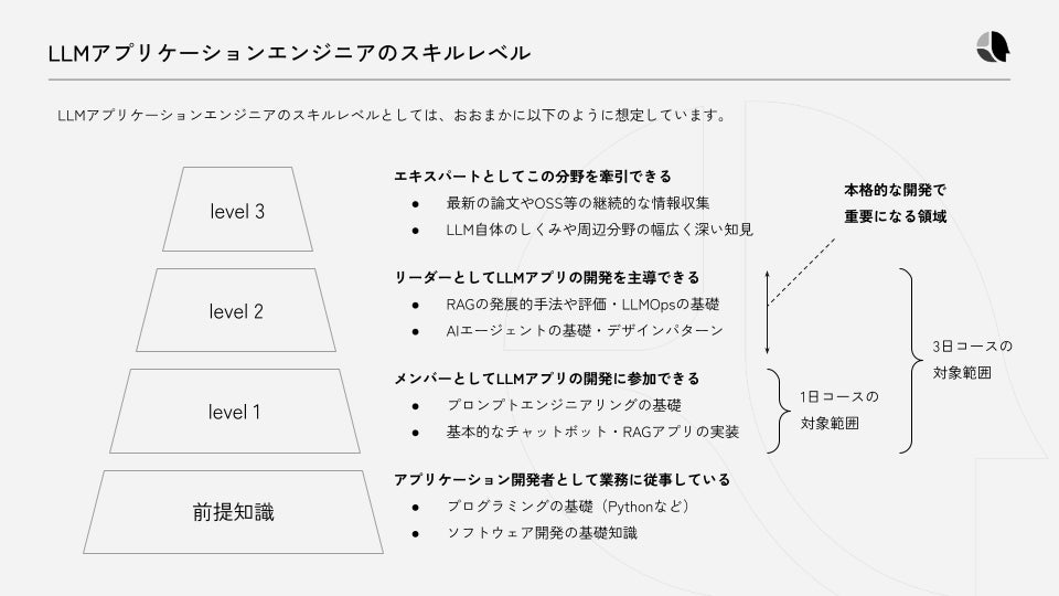 今回の合同研修では、LLMアプリケーション開発の基礎から実践まで、ハンズオンで学ぶ3日コースを提供します。