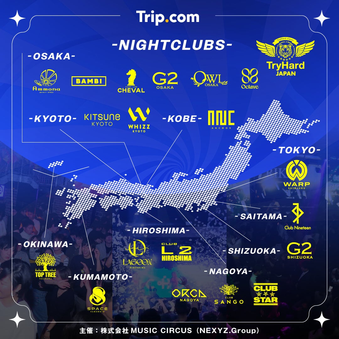 対象ナイトクラブのエントランスにて、MUSIC CIRCUSのリストバンドをご提示でなんと入場料無料!フェスの余韻に浸りながらお得にお楽しみいただけます。