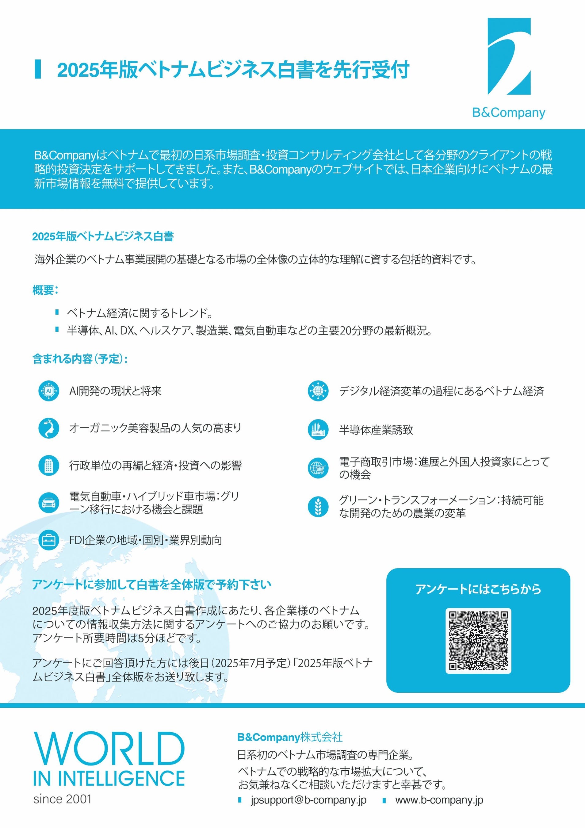 アンケートにご回答頂けた方には後日(2025年7月予定)「2025年版ベトナムビジネス白書」全体版をお送り致します。