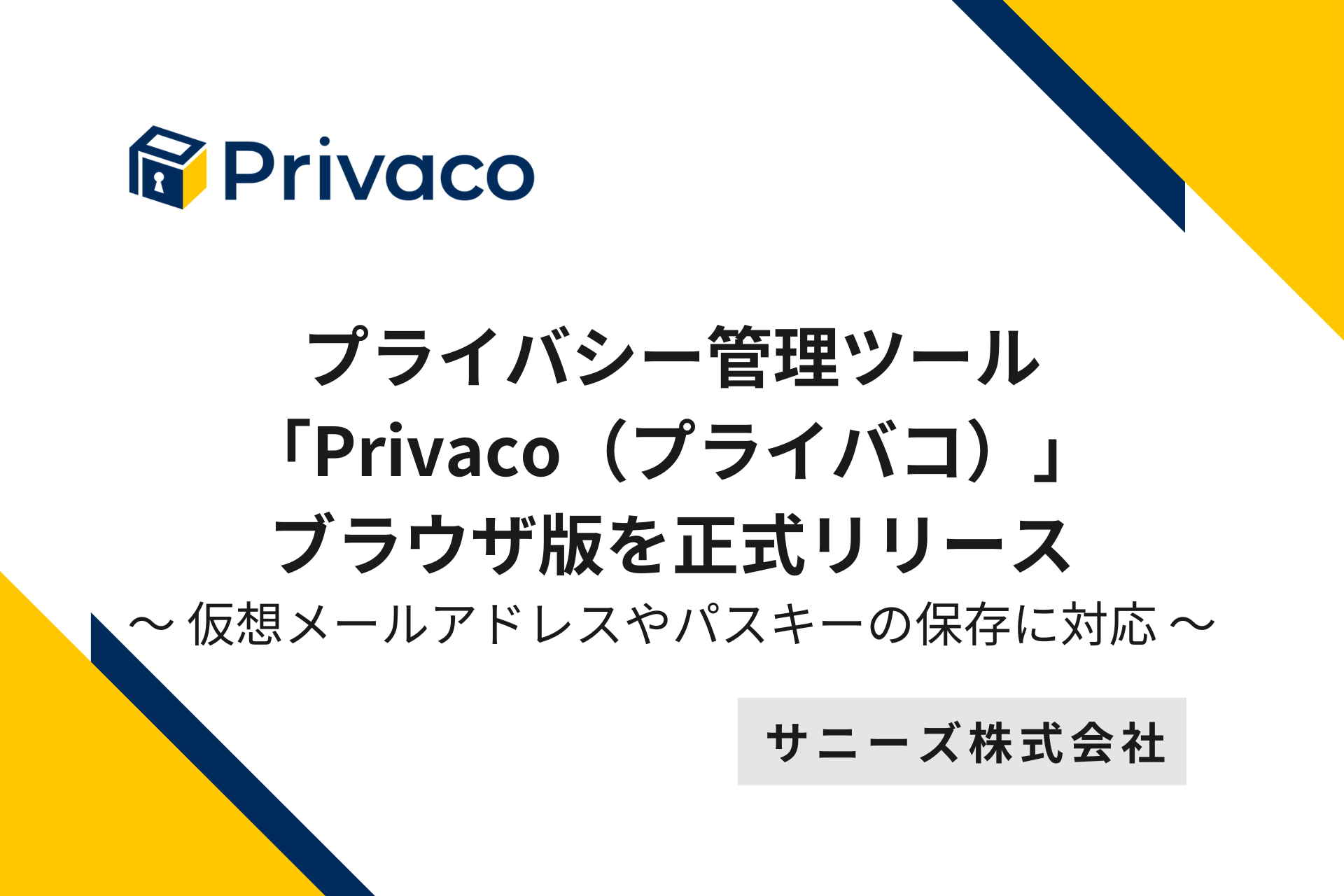 サニーズ株式会社(本社:東京都千代田区、代表取締役:中澤 望、以下「当社」)は、当社が提供するプライバシー管理ツール「Privaco(プライバコ)」のブラウザ版を正式リリースいたしました。