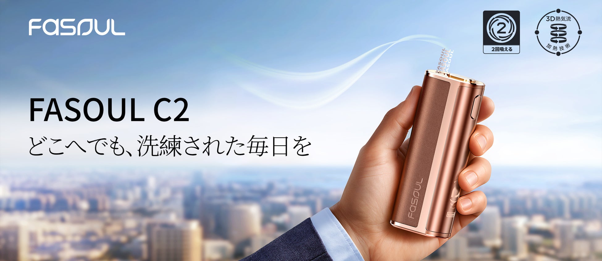 1本で2度吸える加熱式たばこデバイスブランド「Fasoul」ビジネスシーン向けモデルの後継機種として「Fasoul C2」新発売!