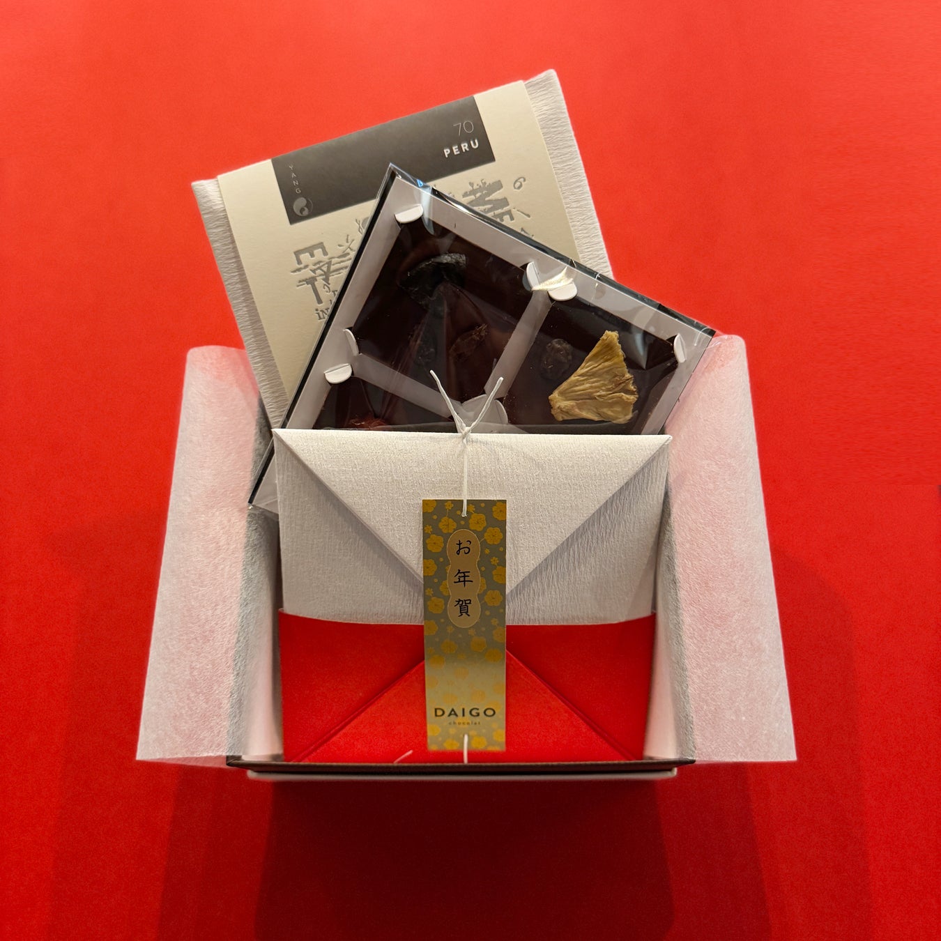 New Year限定ラッピングと『ZENフルーツ(ベトナム80%)』にお好みのショコラを組み合わせて。DAIGO chocolatの多様な美味しさをご堪能いただけるお年賀詰合せです。