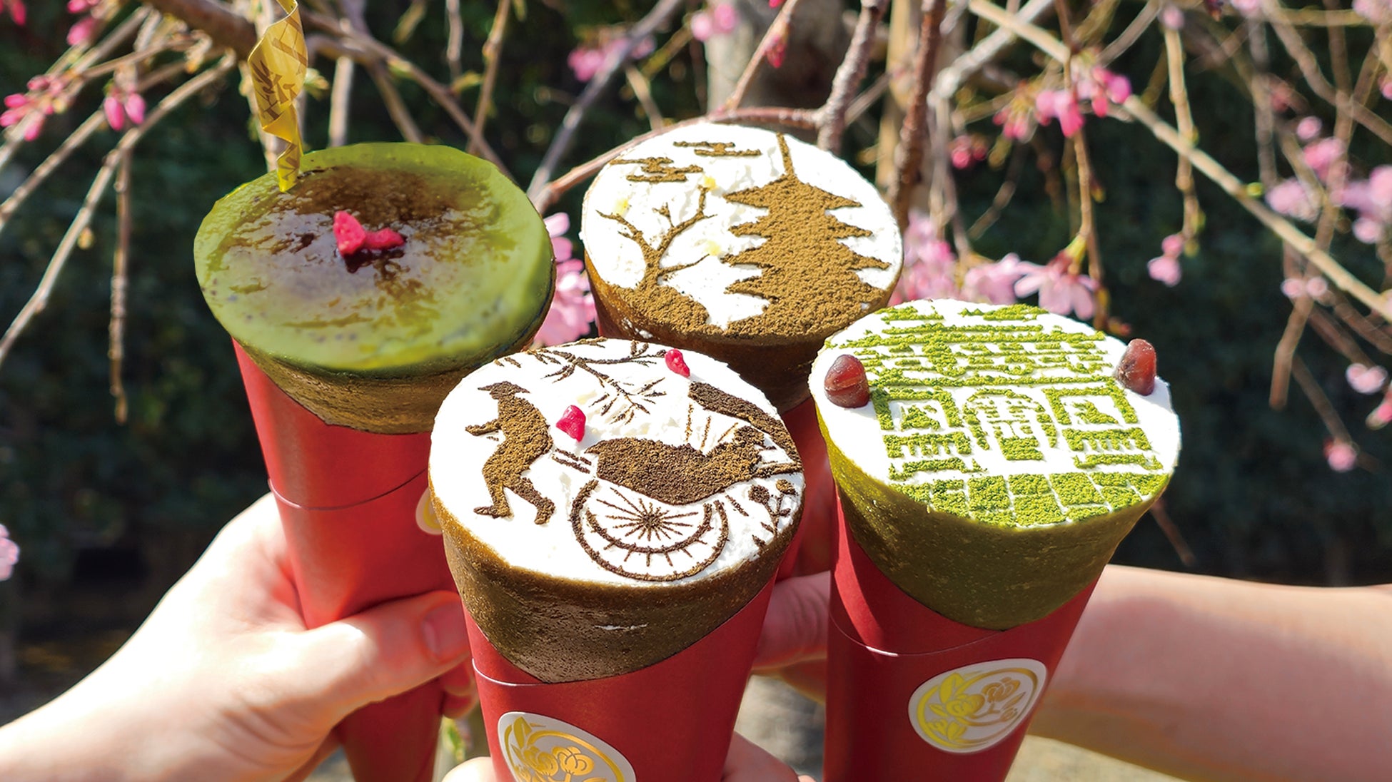 茶寮 甘紋の香 -かもんのこう- は2025年4月末 から浅草に構える店舗にて、農林水産大臣祭で「天皇杯」を受賞した掛川ほうじ茶をふんだんに使った ほうじ茶クレープの新作 2品をリリースいたします。